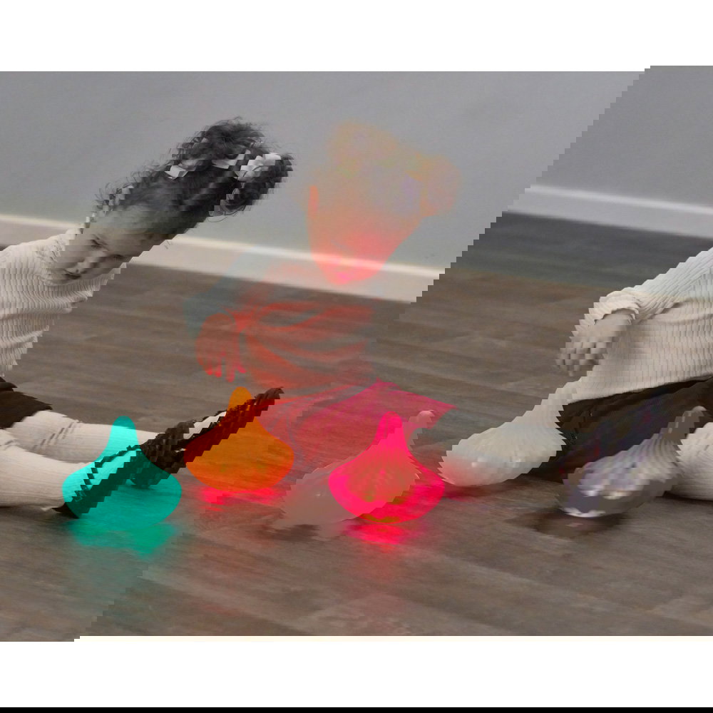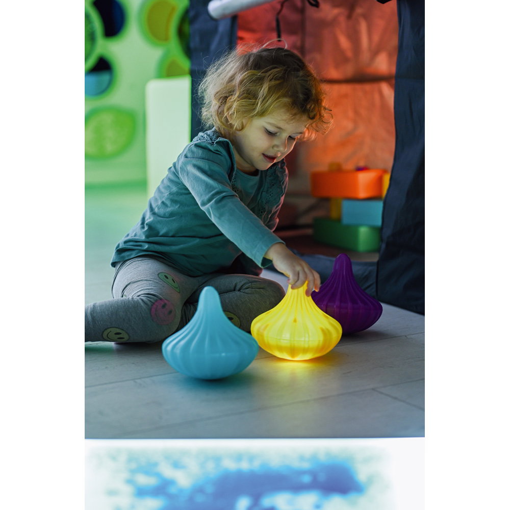 Kinder erforschen ihre Umgebung durch Bewegung, Beobachtung und das Begreifen von Ursache und Wirkung. Das Set aus drei leuchtenden Kreiseln greift diese natürliche Neugier auf und verwandelt ein klassisches Spielzeug in ein interaktives, visuelles Erlebnis. Wenn kleine Hände die Kreisel in Schwung versetzen, entsteht ein faszinierendes Lichtspiel. Dieses Set bietet nicht nur ausdauernden Spielspaß, sondern unterstützt gezielt die motorische und kognitive Entwicklung von Kindern ab 10 Monaten. Es eignet sich hervorragend für den Einsatz in Kindergärten, therapeutischen Praxen und gemütlichen sensorischen Ecken.