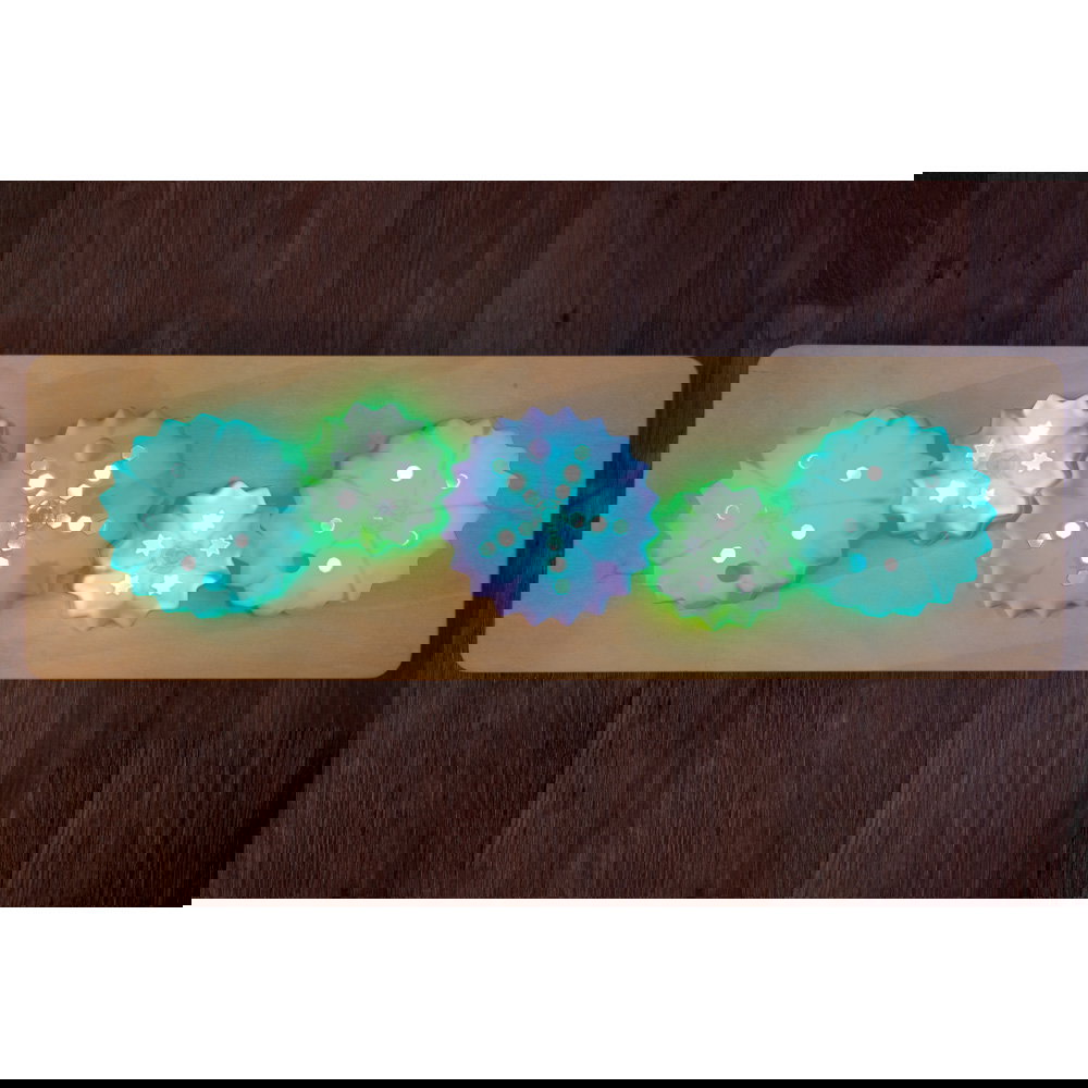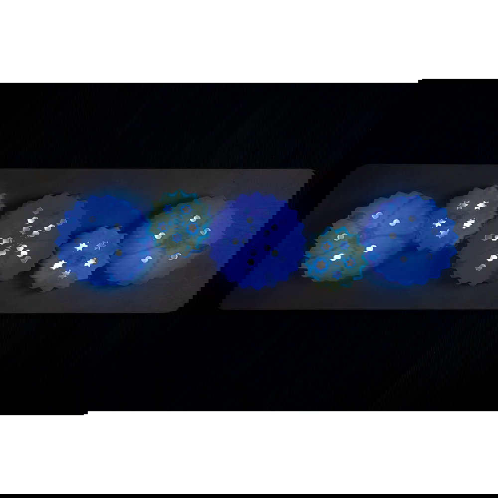 Das Spiel mit den leuchtenden Zahnrädern geht weit über reine Unterhaltung hinaus. Es ist ein wertvolles Werkzeug für die motorische und kognitive Förderung. Das gezielte Greifen der Rillen und das fließende Drehen der Räder erfordern eine präzise Handhabung. Dies schult die Feinmotorik und die Auge-Hand-Koordination intensiv. Gleichzeitig lernen die kleinen Entdecker grundlegende physikalische Prinzipien kennen. Sie beobachten, wie die Drehung eines einzelnen Rades die Bewegung der benachbarten Räder auslöst. Gepaart mit dem Farbwechsel der Lichter, entsteht ein tiefes, intuitives Verständnis für Ursache-Wirkungs-Beziehungen. Durch die beruhigende, fließende Mechanik und das sanfte Licht eignet sich das Board zudem hervorragend für sensorische Ecken und therapeutische Anwendungen, um Konzentration aufzubauen und Reizüberflutungen abzubauen.