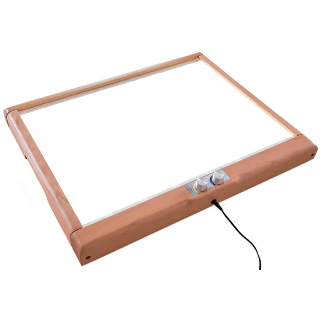 Die große beleuchtete Fläche von 57 x 42 cm ist ideal für mehrere Kinder gleichzeitig, sodass sie gemeinsam spielen, experimentieren und sich gegenseitig staunen lassen können. An den zwei Drehschaltern können die Helligkeit und die Lichttemperatur nach Belieben eingestellt werden – von warmem Weiß bis hin zu kühlem Weiß, was eine Vielzahl von Stimmungseffekten ermöglicht.