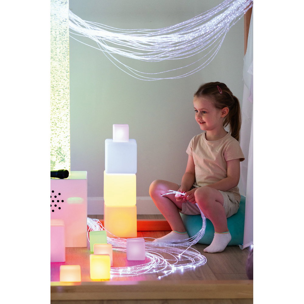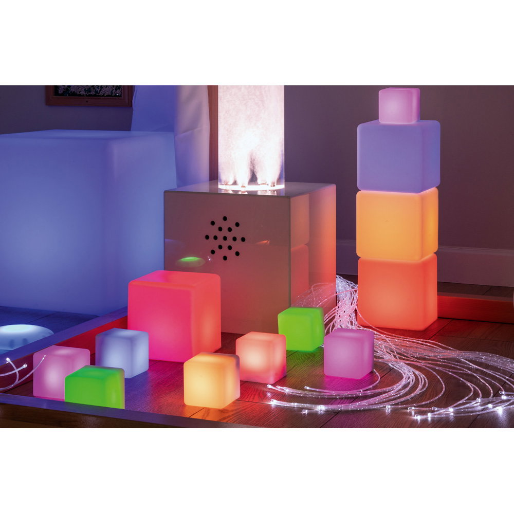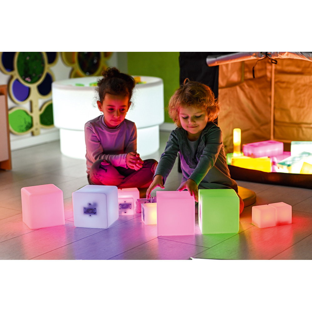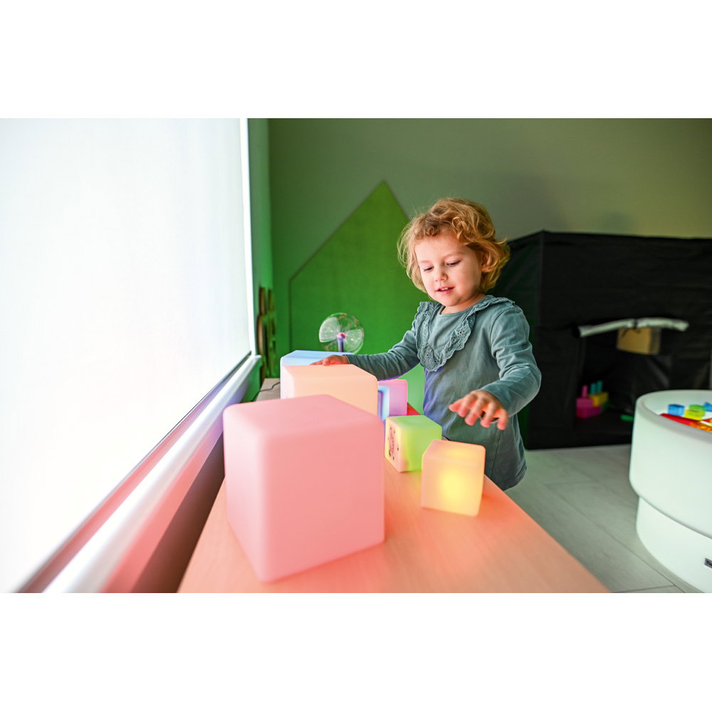 Die Würfel können als Bausteine, zur Dekoration oder als sensorisches Material in Ruheräumen und auf Leuchttischen eingesetzt werden. - Stimuliert die visuelle Wahrnehmung