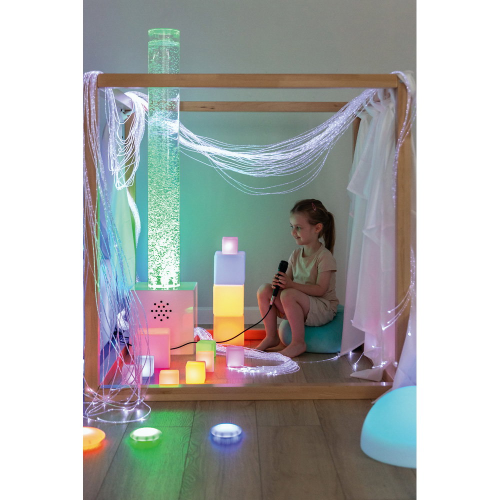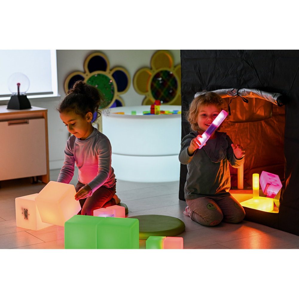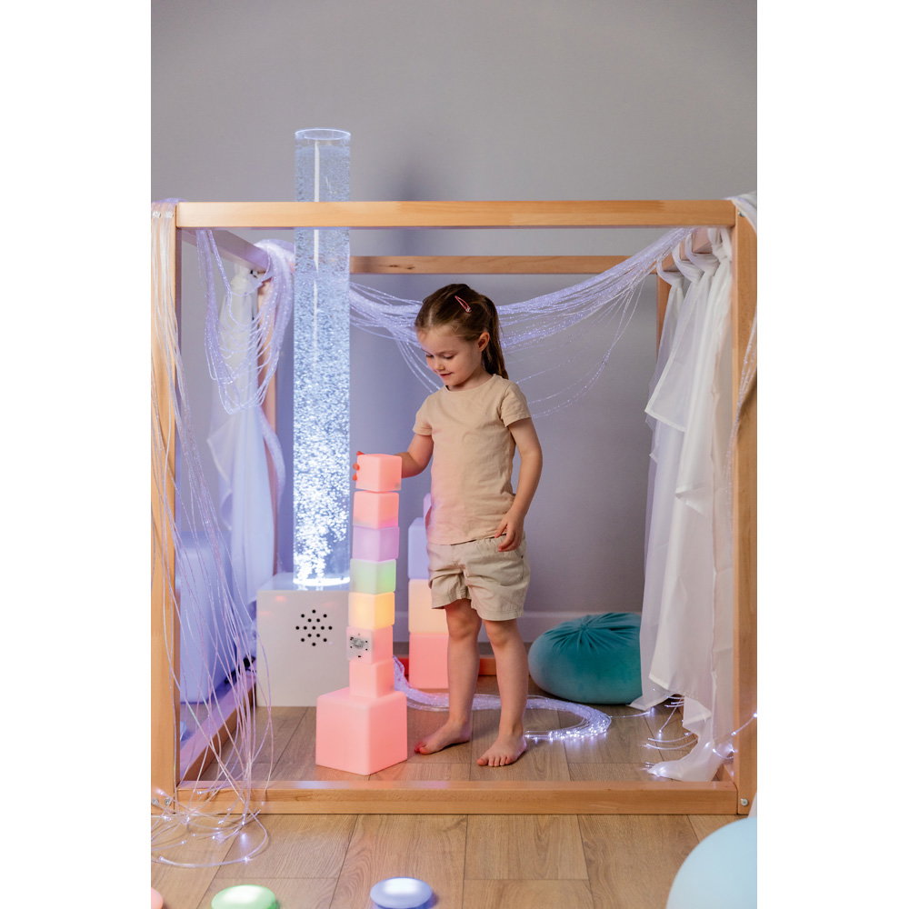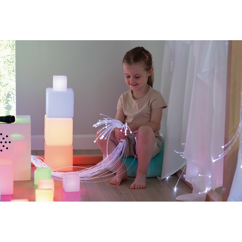 Die Würfel können als Bausteine, zur Dekoration oder als sensorisches Material in Ruheräumen und auf Leuchttischen eingesetzt werden. - Stimuliert die visuelle Wahrnehmung