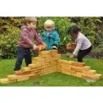 - Reduziertes Verletzungsrisiko: Im Gegensatz zu herkömmlichen Bausteinen aus echten Ziegeln oder Kunststoff minimiert das leichte Weichholz das Risiko von blauen Flecken oder Schürfwunden.