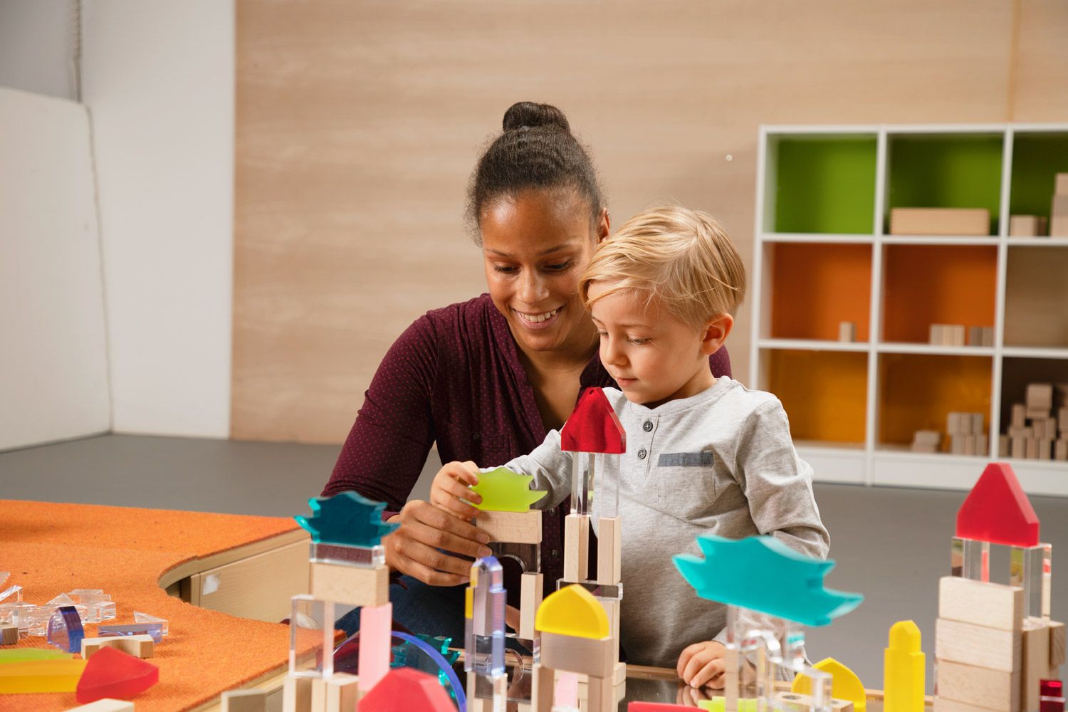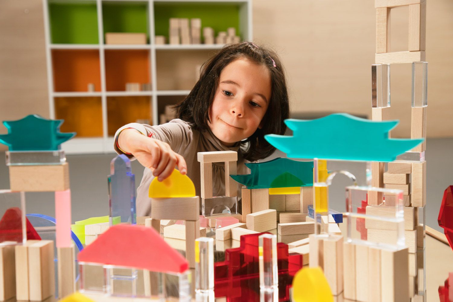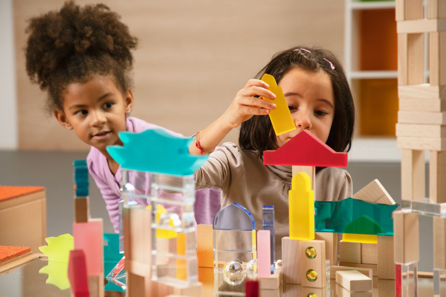 - Fascinierende Farb- und Lichtspiele: Die Kombination aus Acrylglas und Holz erzeugt bei Lichteinfall wunderschöne Farb- und Formenspiele. Kinder können die Ästhetik ihrer Bauwerke entdecken und beeindruckende visuelle Effekte erleben, die ihre Fantasie anregen.