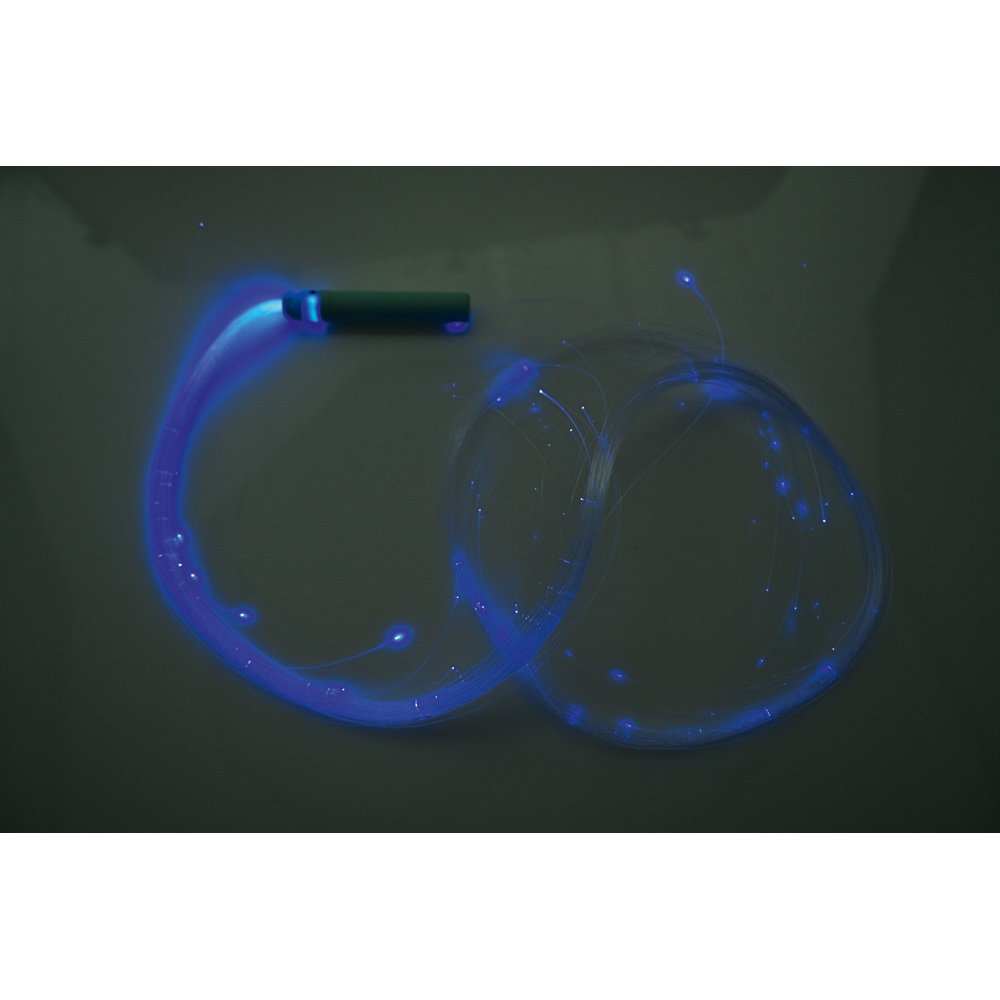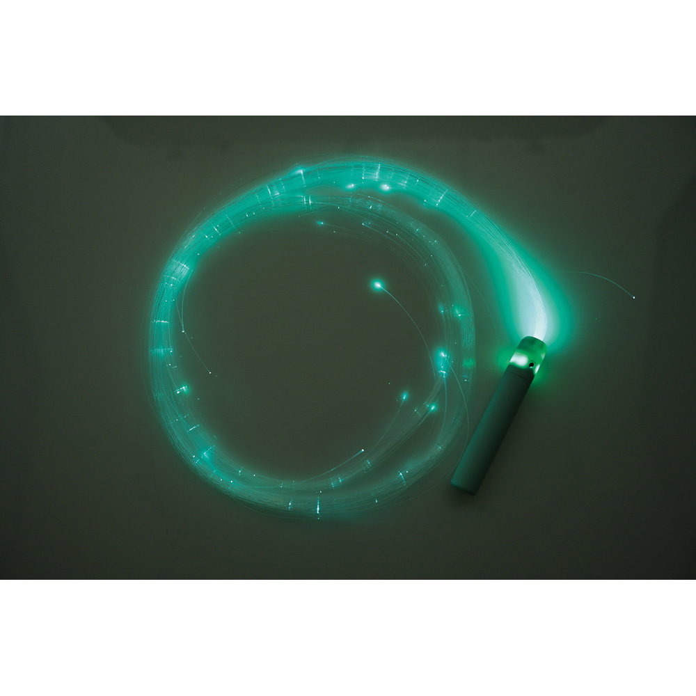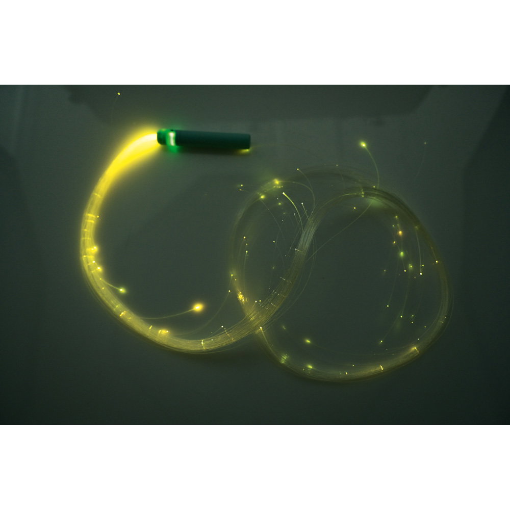 Der handliche Kunststoffgriff ist ergonomisch geformt, sodass er sich auch von kleineren Händen sicher und bequem halten lässt. Mit einer Faserlänge von rund 170 Zentimetern entsteht bei jeder Bewegung ein großzügiger, beeindruckender Lichtschweif. Der Lichtleiter eignet sich hervorragend für den gezielten Einsatz in abgedunkelten Sinnesräumen, in ruhigen Spielecken von Kindergärten oder als wertvolles interaktives Element in der Ergo- und Physiotherapie. Selbst wenn er gerade nicht aktiv bespielt wird, fungiert er als ästhetisches, dekoratives Objekt, das eine einladende und magische Atmosphäre schafft.