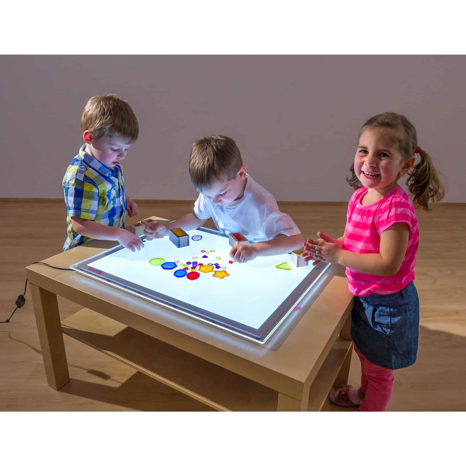 Hinweis: Die Verwendung des Lichttisches sollte unter unmittelbarer Aufsicht von Erwachsenen erfolgen, um die Sicherheit der Kleinen zu gewährleisten.