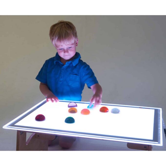Willkommen zu unserem hochwertigen Lichttisch! Dieses innovative Lernwerkzeug ist perfekt für Kinder im Alter von 3 bis 12 Jahren und fördert spielerisches Lernen durch faszinierende Lichtexperimente. Mit sparsame LED-Lichtquelle und einem ansprechenden SlimLine Design mit abgerundeten Kanten ist der Lichttisch sowohl funktional als auch sicher für die kleinen Entdecker.
