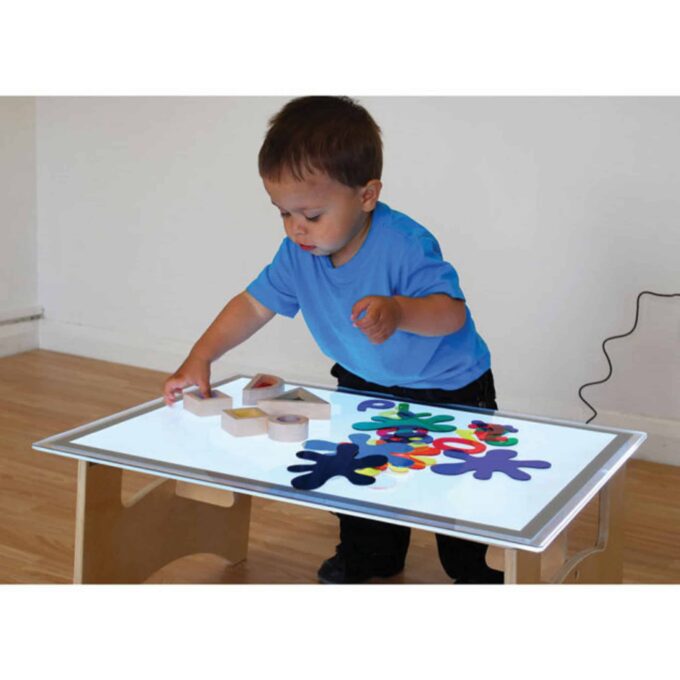 Der Lichttisch lädt die Kinder dazu ein, die Welt um sich herum durch Licht und Schatten in einem neuen Licht zu sehen. Ob beim Legen von Farbmuster, beim Werfen von Schatten oder beim Forschen nach den feinsten Adern in Baumblättern – die Möglichkeiten sind schier endlos! Die sanfte Beleuchtung lenkt die Aufmerksamkeit der Kinder auf die aufgelegten Objekte, was ihre Ausdauer, Konzentration und Sinneswahrnehmung fördert.