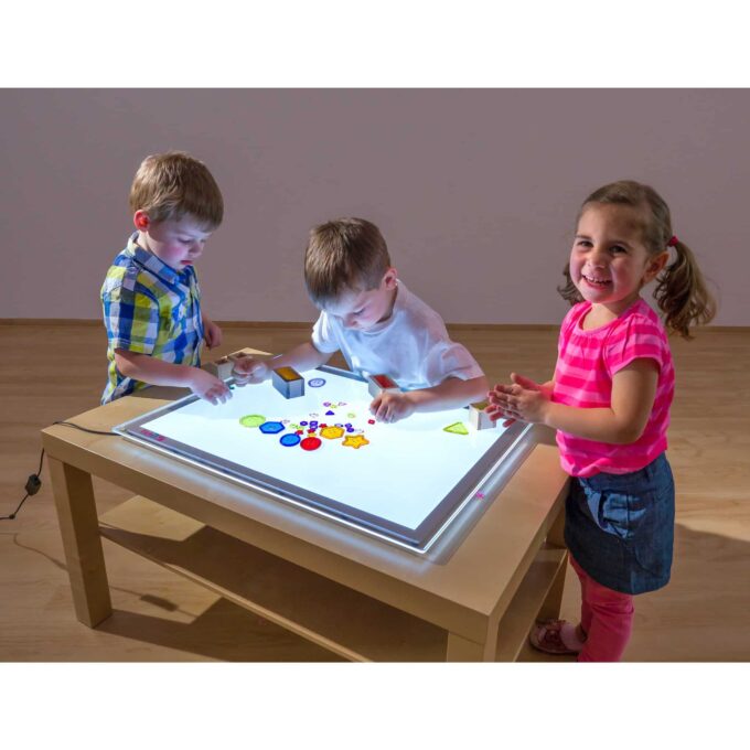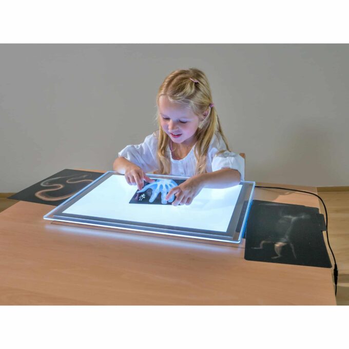 - Robustes Design: Hochwertige Materialien garantieren, dass der Lichttisch lange hält und auch intensiven Spielbetrieb übersteht.