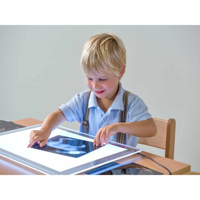 Hinweis: Die Verwendung des Lichttisches sollte unter unmittelbarer Aufsicht von Erwachsenen erfolgen, um die Sicherheit der Kleinen zu gewährleisten.