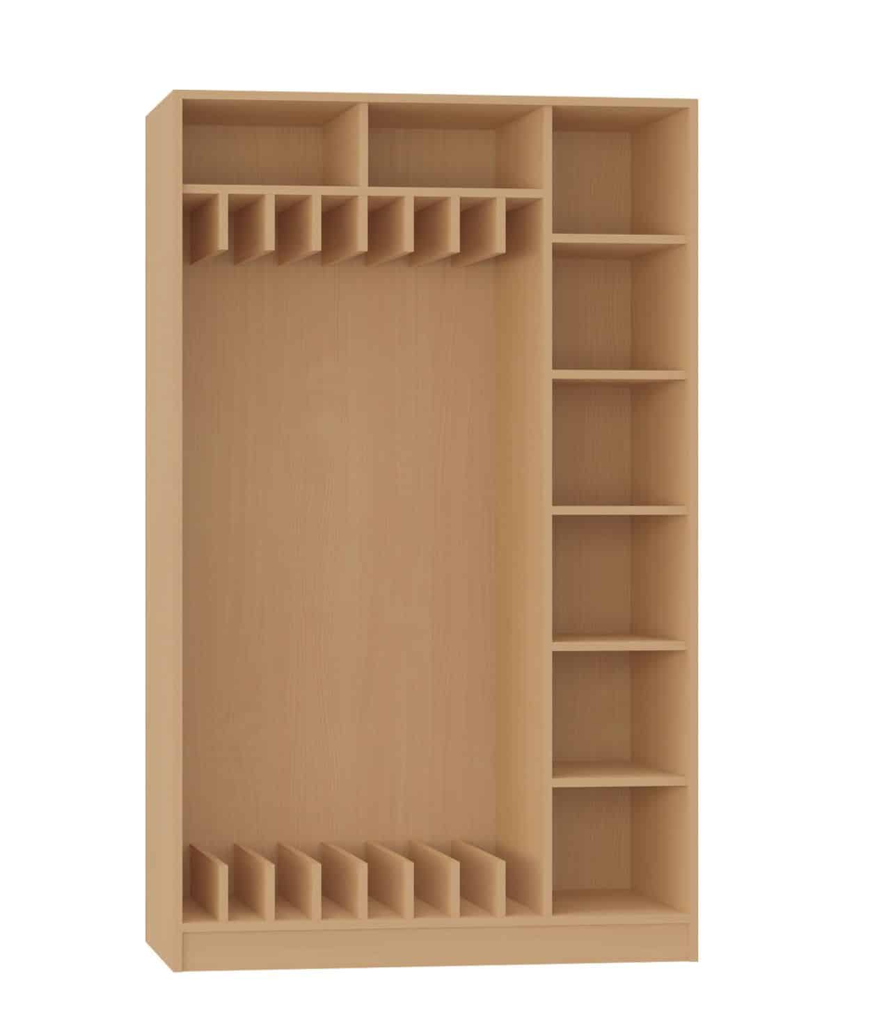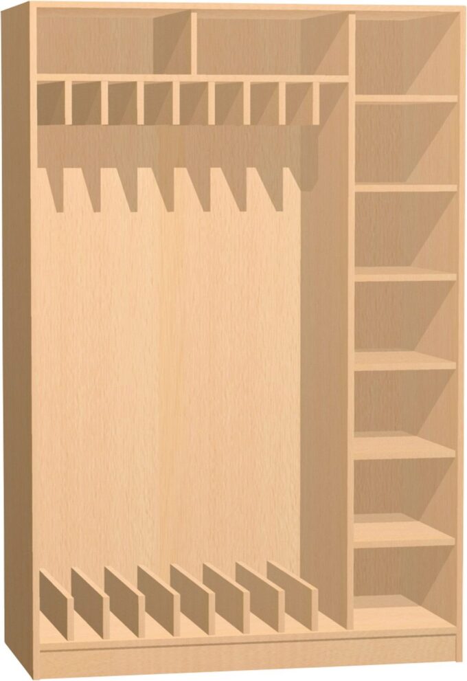Dank des höhenverstellbaren oberen Fachbodens ist der Schrank für Liegepolster in den Größen 135 x 52 cm, 145 x 56 cm und 155 x 56 cm geeignet. Der Schrank ist sowohl mit als auch ohne Türen erhältlich, um sich flexibel an Ihre Bedürfnisse anzupassen. Die hochwertige Verarbeitung und Langlebigkeit machen ihn zu einer zuverlässigen Wahl für die Aufbewahrung von Polstern und Decken.