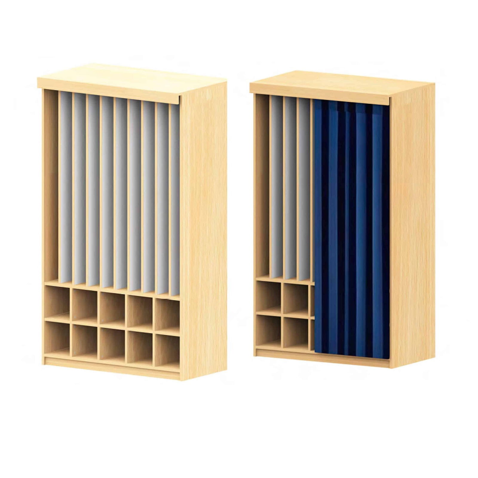 Dieses Schranksystem ist mehr als nur ein Aufbewahrungsmöbel. Es ist ein durchdachter Helfer, der den Alltag erleichtert. Die durchgehenden Trennwände sorgen dafür, dass jedes Polster sein eigenes Fach hat – kein Verrutschen, kein Durcheinander. Zusätzliche Fächer im unteren Bereich bieten praktischen Stauraum für Decken, Kissen oder persönliche Gegenstände der Kinder. Wählen Sie je nach Raumkonzept und Bedarf zwischen verschiedenen Breiten und entscheiden Sie sich für eine offene Variante oder eine Ausführung mit Vorhang für eine besonders ruhige Optik.