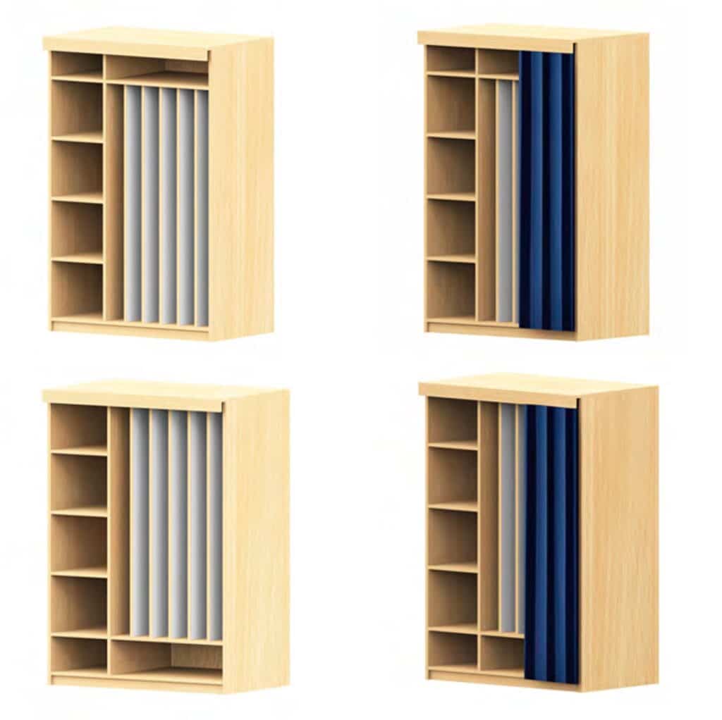 Im freundlichen Buche-Dekor gehalten, ist dieser Schrank nicht nur äußerst funktional, sondern auch ein ästhetischer Gewinn für jeden Raum. Die durchdachte Konstruktion mit durchgehenden Trennwänden für die Polster sowie zusätzlichen Fächern oben, unten oder seitlich macht ihn zu einem wahren Organisationstalent. Erhältlich in zahlreichen Größen und wahlweise mit oder ohne Vorhang, passt sich dieses System flexibel an Ihre individuellen Bedürfnisse und räumlichen Gegebenheiten an und schafft eine aufgeräumte, ruhige Atmosphäre.