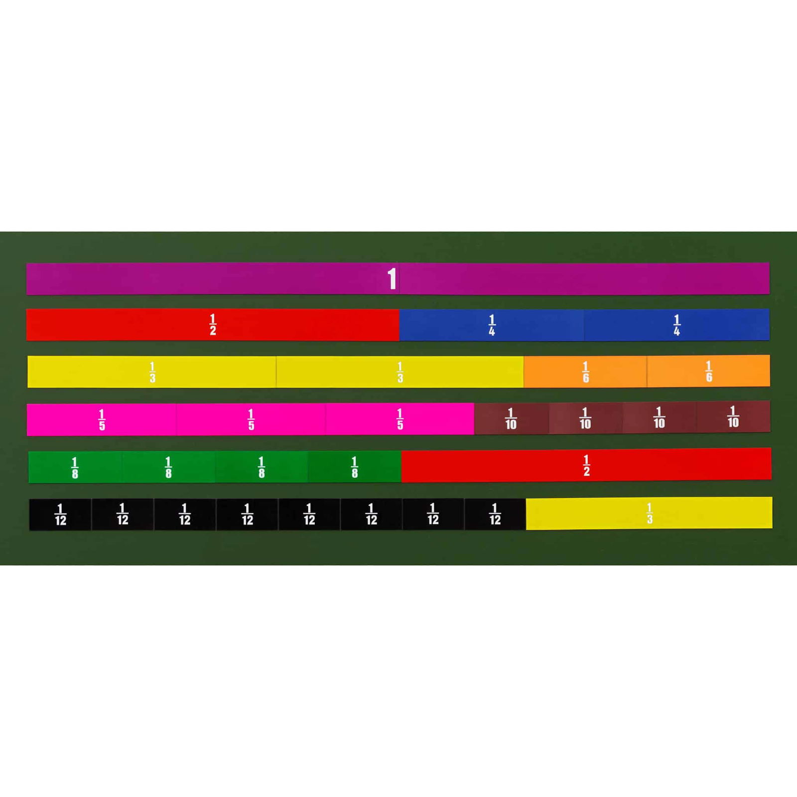 Mit den einzelnen Bruchstücken dieses Sets können Ihre Schülerinnen und Schüler schnell und einfach erkennen, welchen Wert sie besitzen und wie sie im Verhältnis zu anderen Bruchstücken stehen. Das Erlernen des Umgangs mit Brüchen wird dadurch für die Kinder viel greifbarer und weniger abstrakt. Jedes Bruchteil hat eine eigene Farbe, was nicht nur förderlich für die visuelle Wahrnehmung ist, sondern auch beim Lernen hilft.