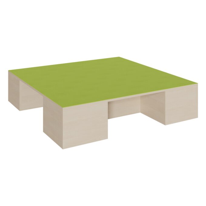 Schaffen Sie das ultimative Zentrum für Spiel, Bewegung und Ordnung mit unserem großzügigen Quadrat-Podest. Mit einer beeindruckenden Fläche von 150 x 150 cm ist dieses Podest mehr als nur eine erhöhte Ebene – es ist eine Bühne für kleine Theaterstücke, eine weitläufige Baustelle für große Projekte und eine gemütliche Insel für ruhige Momente. Das Besondere: An zwei Seiten sind drei clevere Nischen integriert, die als „Garagen“ für Rollkästen dienen und so für beispiellose Ordnung sorgen. Die Kombination aus massiver Bauweise, strapazierfähiger Linoleum-Oberfläche und dreifachem Stauraum macht dieses Podest zum Herzstück jeder modernen und multifunktionalen Raumgestaltung in Kitas und Schulen.