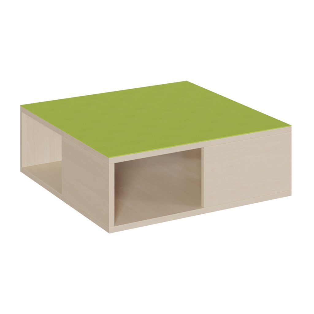 Entdecken Sie ein Podest, das so einzigartig wie vielseitig ist: unser quadratisches Linoleum-Podest mit wechselseitig halbgeschlossener Bauweise. Dieses clever gestaltete Element bricht mit traditionellen Formen und bietet von jeder Seite einen neuen, spannenden Anblick. Mal halb offen, mal halb geschlossen – dieser Würfel mit einer Grundfläche von 70×70 cm und einer komfortablen Höhe von 46 cm ist ein wahres Multitalent. Ob als geheimnisvolles Versteck, praktisches Regal oder als zentraler Baustein in einer größeren Podestlandschaft, dieses Podest regt die Fantasie an und schafft gleichzeitig nützlichen Stauraum. Die hochwertige Linoleum-Oberfläche und die robuste Konstruktion machen es zum perfekten Allrounder für jeden Gruppenraum.