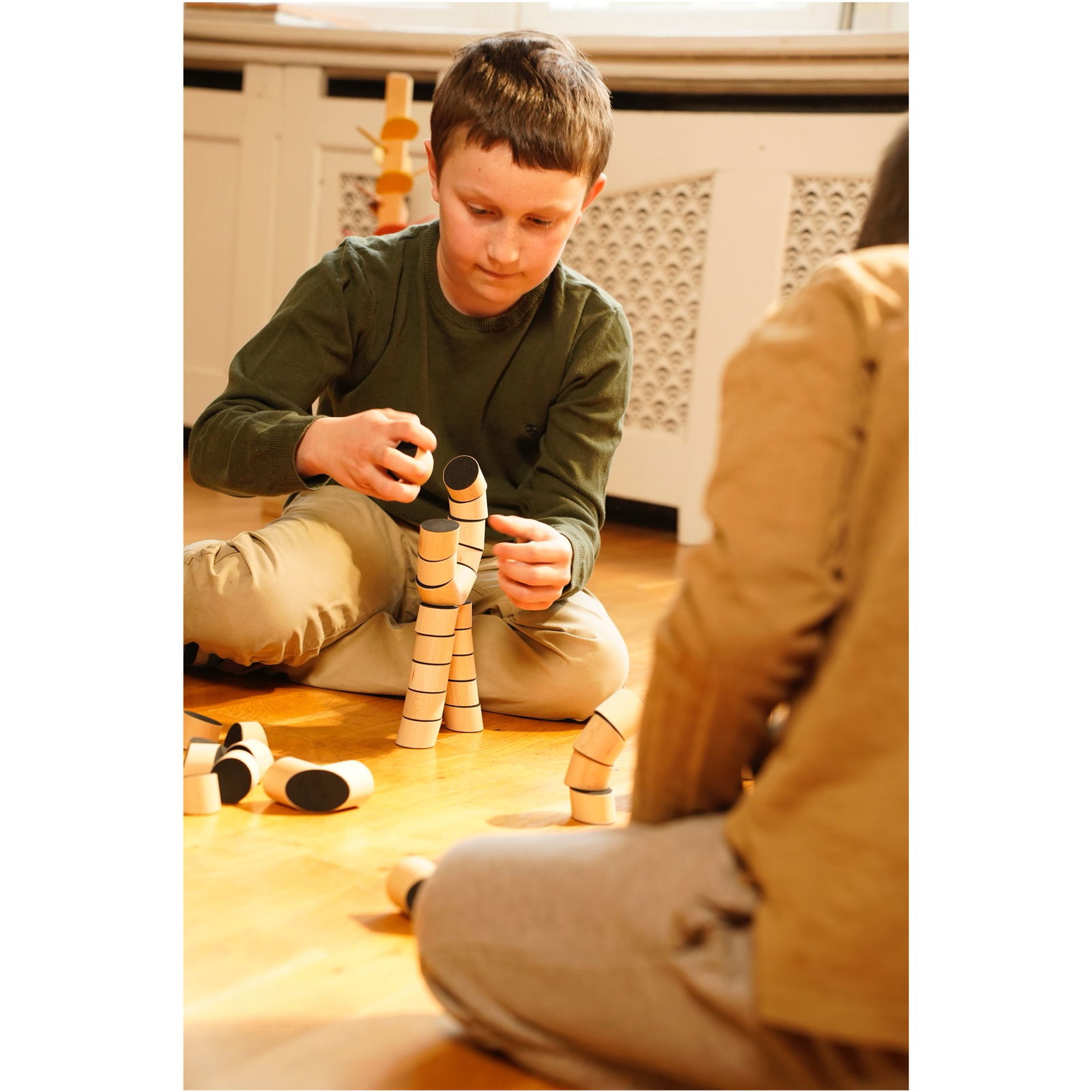 Gemeinsam die Grenzen der Statik auszuloten, macht doppelt so viel Spaß. Ob in der Familie, in der Kita oder in der Schule – Loggos sind ein fantastisches Gemeinschaftsspiel. Kinder müssen sich absprechen, gemeinsam planen und fiebern zusammen bei jedem gewagten Stapelversuch mit. Das stärkt soziale Kompetenzen und den Teamgeist. - Praktisch und überall spielbar