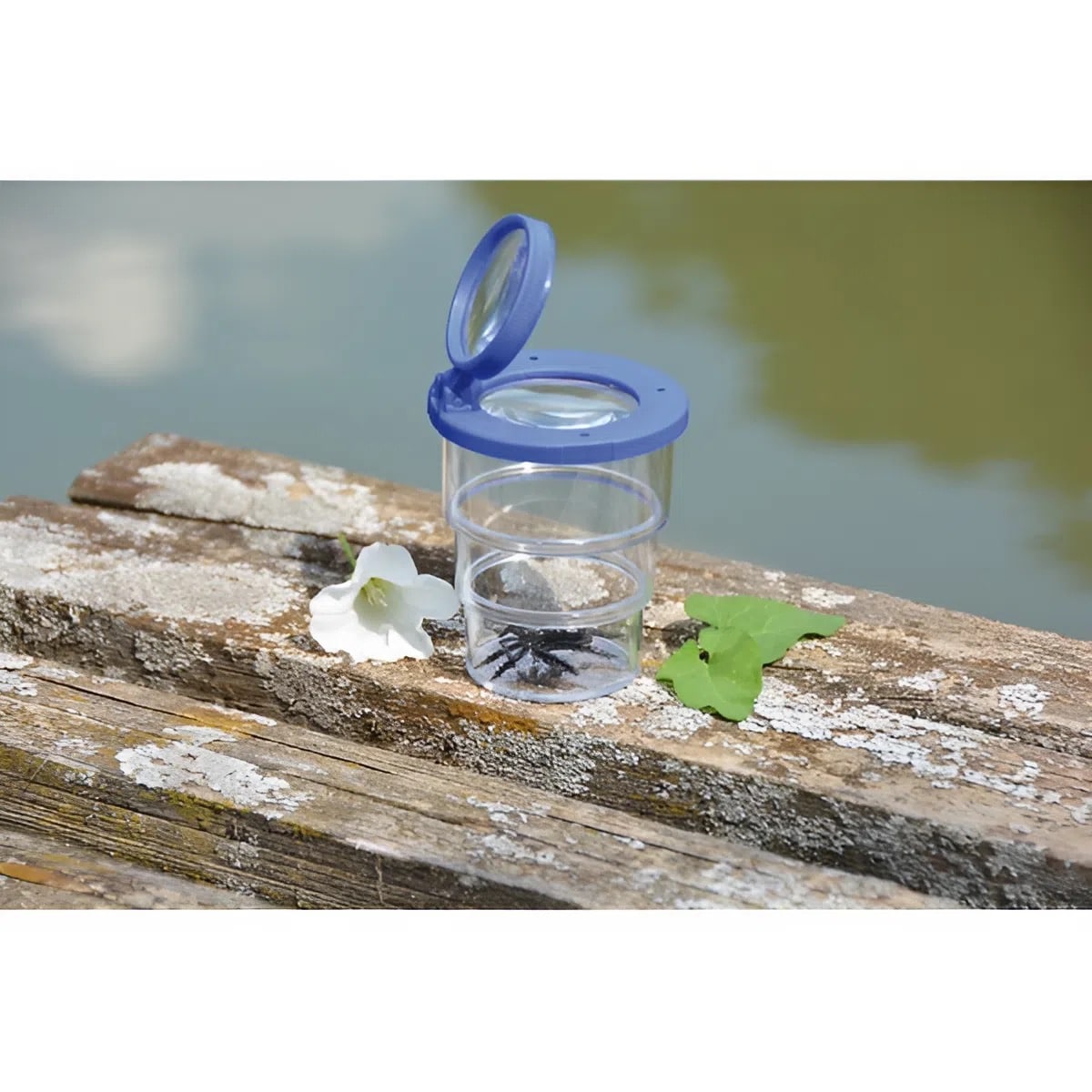 Dank ihres cleveren Teleskop-Designs ist die Dose kompakt genug für jede Hosentasche. Wird ein interessantes Fundstück entdeckt, lässt sie sich einfach ausziehen, um auch größeren Objekten wie Schneckenhäusern oder Eicheln Platz zu bieten. Zwei übereinanderliegende Lupen sorgen für eine starke Vergrößerung und bringen erstaunliche Details zum Vorschein. Eine eingebaute Zentimeterskala am Boden hilft dabei, die Fundstücke direkt zu vermessen und zu vergleichen. Um den Entdeckerdrang sofort zu wecken, ist sogar schon eine Kunststoff-Spinne zum ersten Beobachten enthalten.