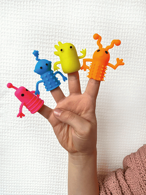 Die Lustigen Finger Freunde kommen im Set mit insgesamt 27 Teilen, die unzählige Möglichkeiten für kreatives Freispiel bieten. Ob als Charaktere in einem Theaterstück, tierische Begleiter im Spiel oder einfach als witzige Deko für den Schreibtisch – die kunterbunten Fingerpuppen bringen Lächeln in jeden Raum!