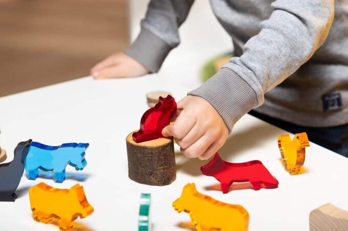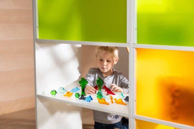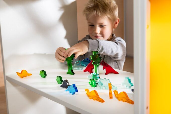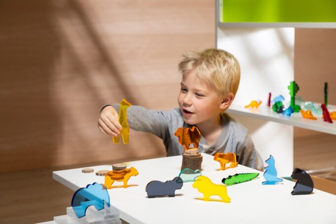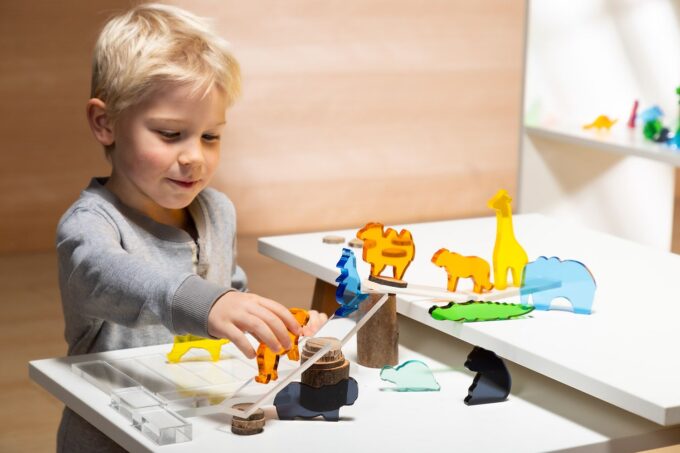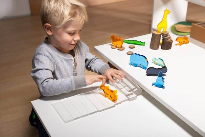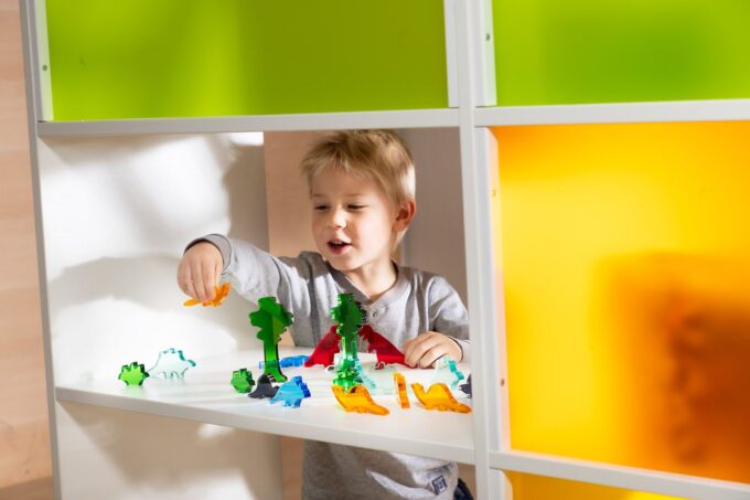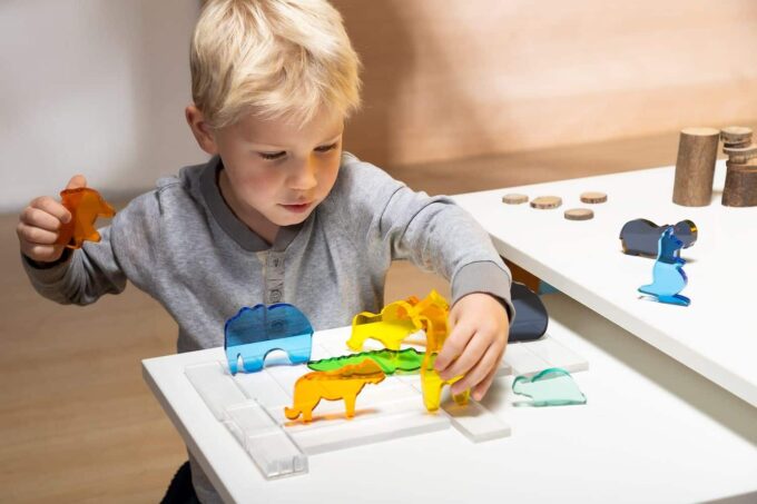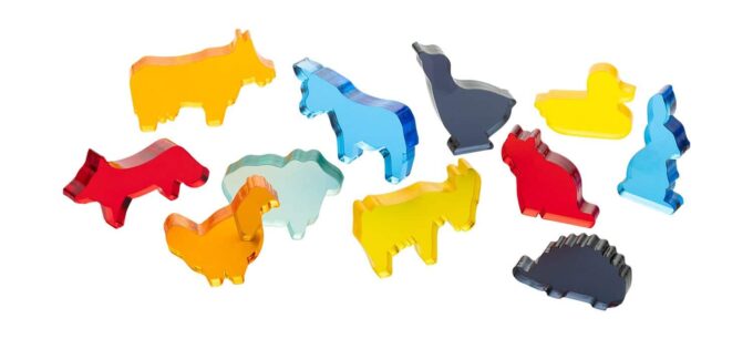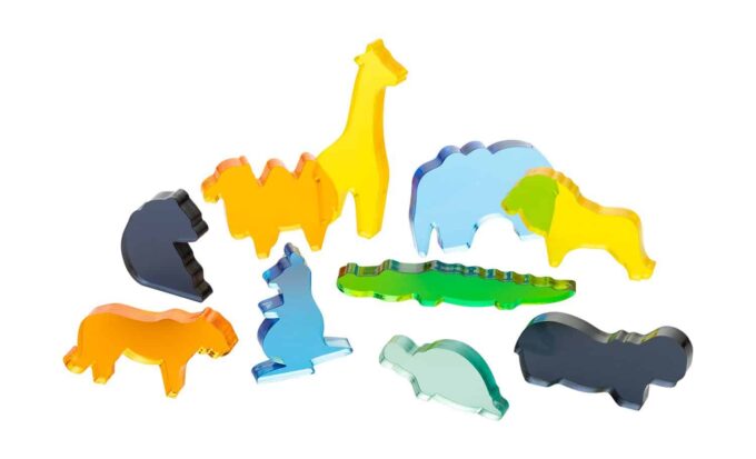 - Ansprechendes Design: Die Figuren sind in verschiedenen transparenten Farben gestaltet, die nicht nur schön anzusehen sind, sondern auch interessante optische Effekte erzeugen. Die Kinder können diese farbenfrohen Tierfiguren spielerisch erkunden und ihre Umgebung gestalten.