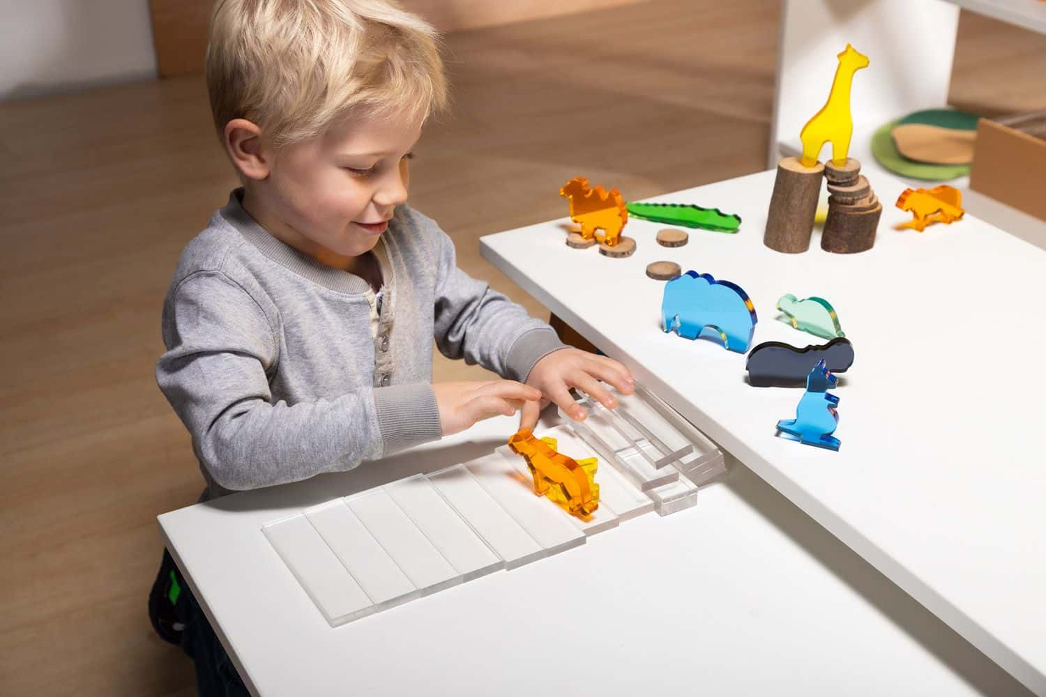 • Ansprechendes Design: Die Figuren sind in verschiedenen transparenten Farben gestaltet, die nicht nur schön anzusehen sind, sondern auch interessante optische Effekte erzeugen. Die Kinder können diese farbenfrohen Tierfiguren spielerisch erkunden und ihre Umgebung gestalten.