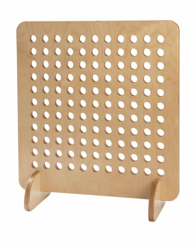 - Inhalt: 1 Steckbrett (mit 11 x 11 cm Löchern), 2 Standfüße (19 cm lang)