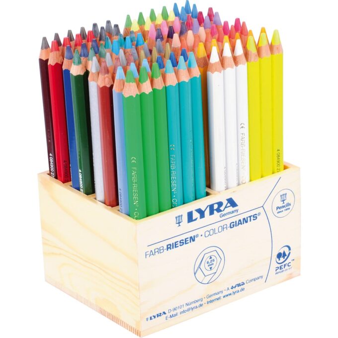 Jeder Stift hat eine Länge von 17,5 cm und ist mit einer dicken, bruchfesten Mine ausgestattet, die einen Durchmesser von 0,6 cm hat. Die intensiven Farben der LYRA Dickfarbstifte sorgen für brillante und lebendige Kunstwerke. Ihre ergonomische Form unterstützt eine bequeme Handhabung und fördert die richtige Stifthaltung, was sie ideal für kleine Künstlerhände macht – egal, ob Links- oder Rechtshänder.