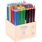 Das Set umfasst 96 Farbstifte in einer robusten Holzbox, die für Ordnung und einfachen Zugriff sorgt. Jeder Stift ist 17,5 cm lang und hat einen Durchmesser von 1 cm, während die Mine einen Durchmesser von 0,6 cm aufweist. Die 24 leuchtenden Farben sind in vierfachem Satz vorhanden, sodass Ihre Klasse immer gut ausgestattet ist und jeder Schüler seine Kreativität voll ausleben kann.