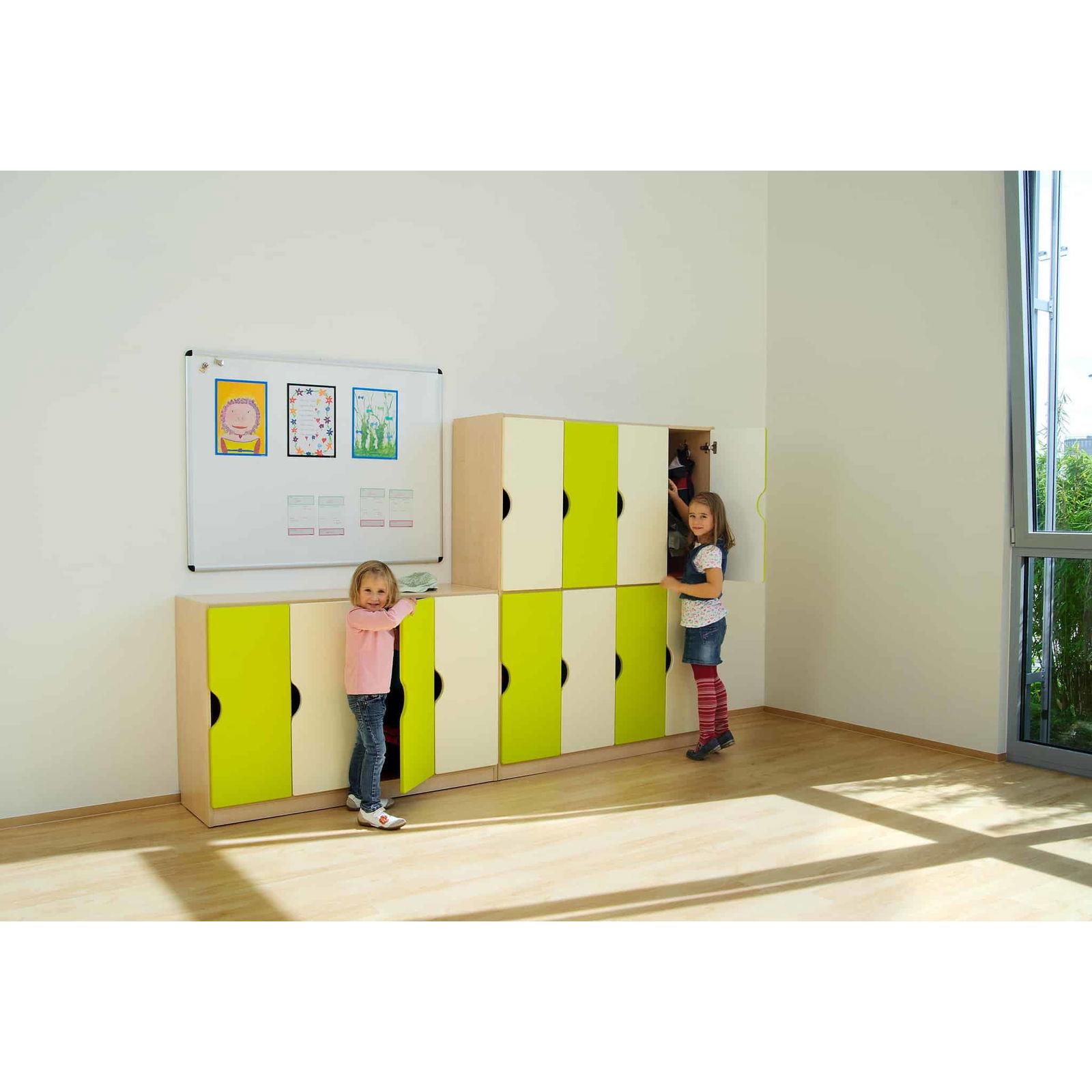 - Variantenreiche Nutzung: Der Kleiderschrank eignet sich nicht nur für Garderobenbereiche, sondern auch für die Kleinteilorganisation in Lern- und Spielräumen.