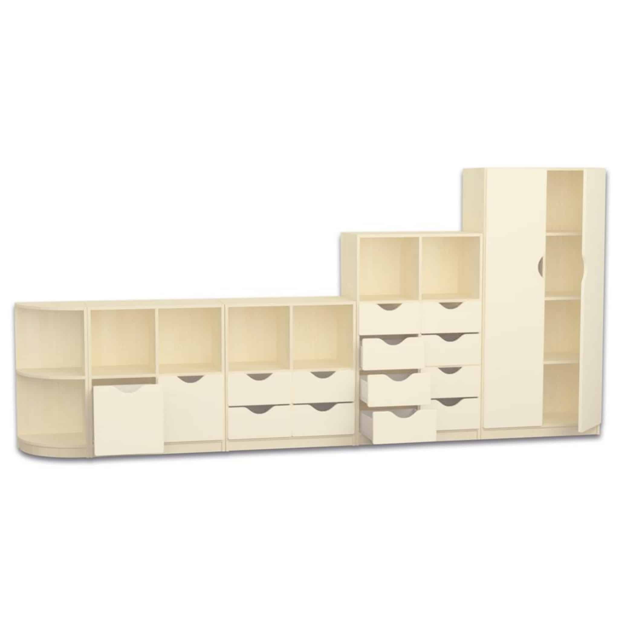 - Optimale Platzausnutzung: Die abgestimmte Kombination der fünf Schränke sorgt für eine effiziente Raumnutzung, ohne den Raum zu überladen.