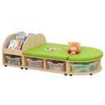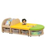- Optionale Aufbewahrungsboxen: Nutzen Sie bis zu acht Kunststoffboxen, um Spielsachen, Bausteine und andere Utensilien ordentlich zu verstauen.