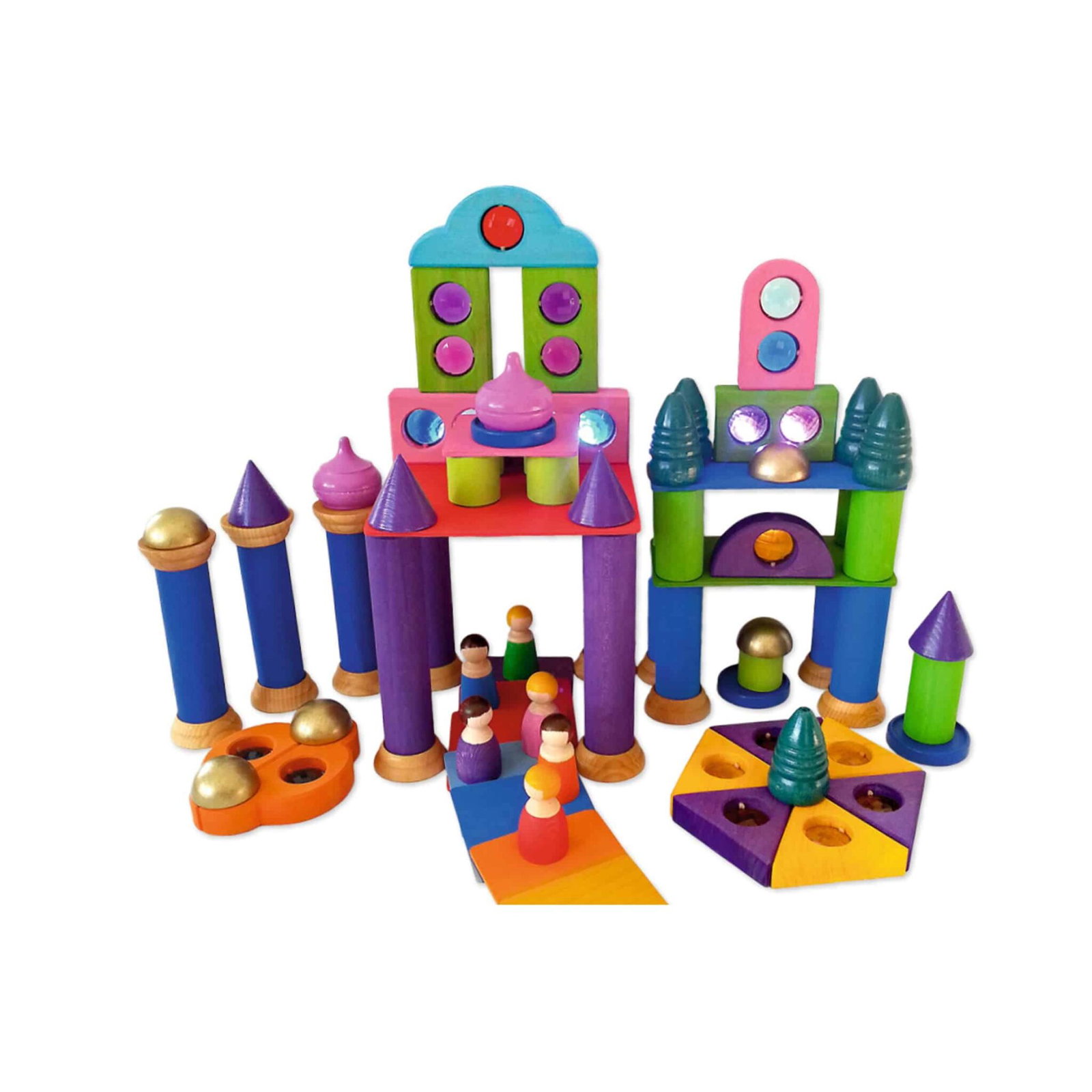 Das Spielen mit dem Märchenturm-Set fördert nicht nur die Kreativität der Kinder, sondern auch ihr räumliches Vorstellungsvermögen und ihre motorischen Fähigkeiten. Während sie ihre eigenen Strukturen bauen und gestalten, lernen sie, mit verschiedenen Formen, Farben und Materialien zu experimentieren. Das Set lädt die Kinder ein, eigene Geschichten zu erfinden und ihre innovativen Designs zum Leben zu erwecken – sei es durch den Bau einer majestätischen Burgenlandschaft oder eines gemütlichen Dorfes.