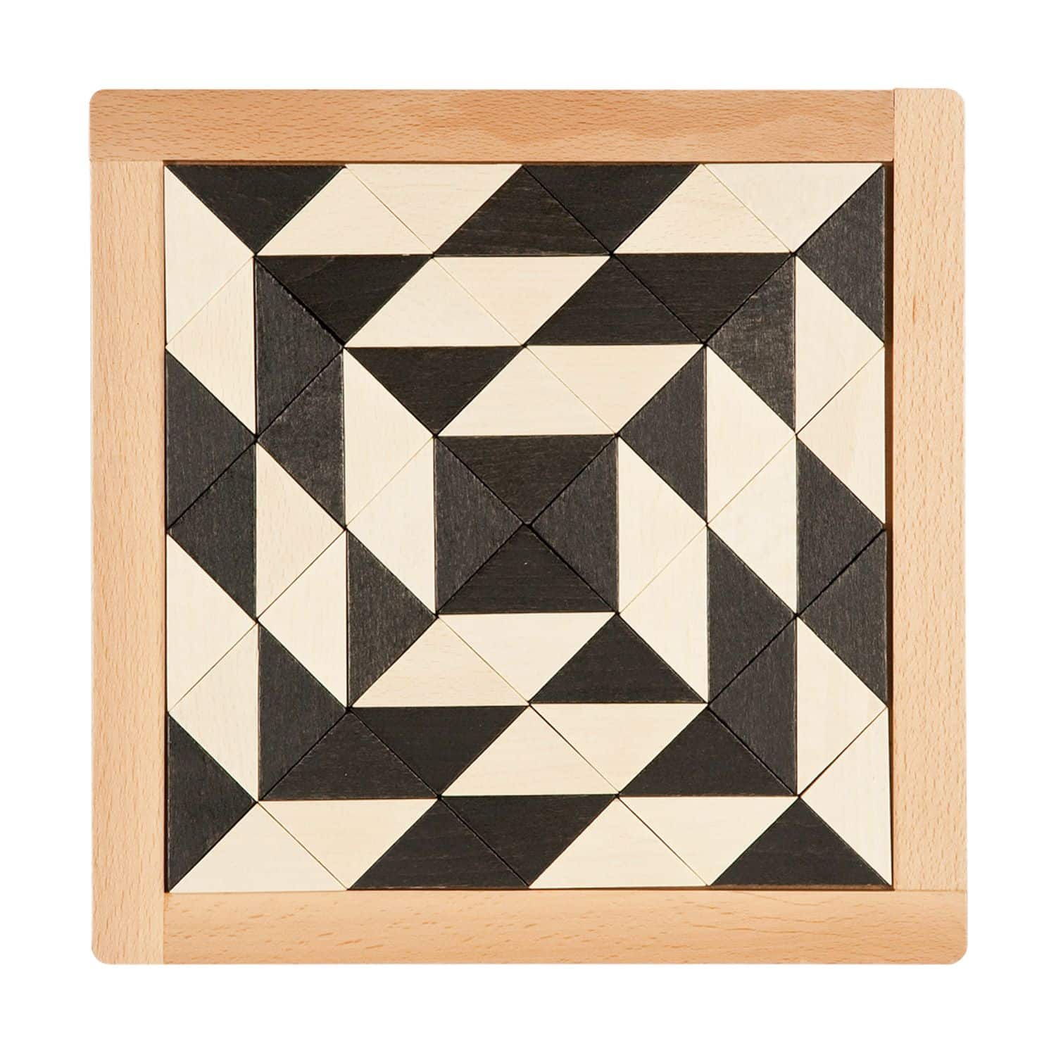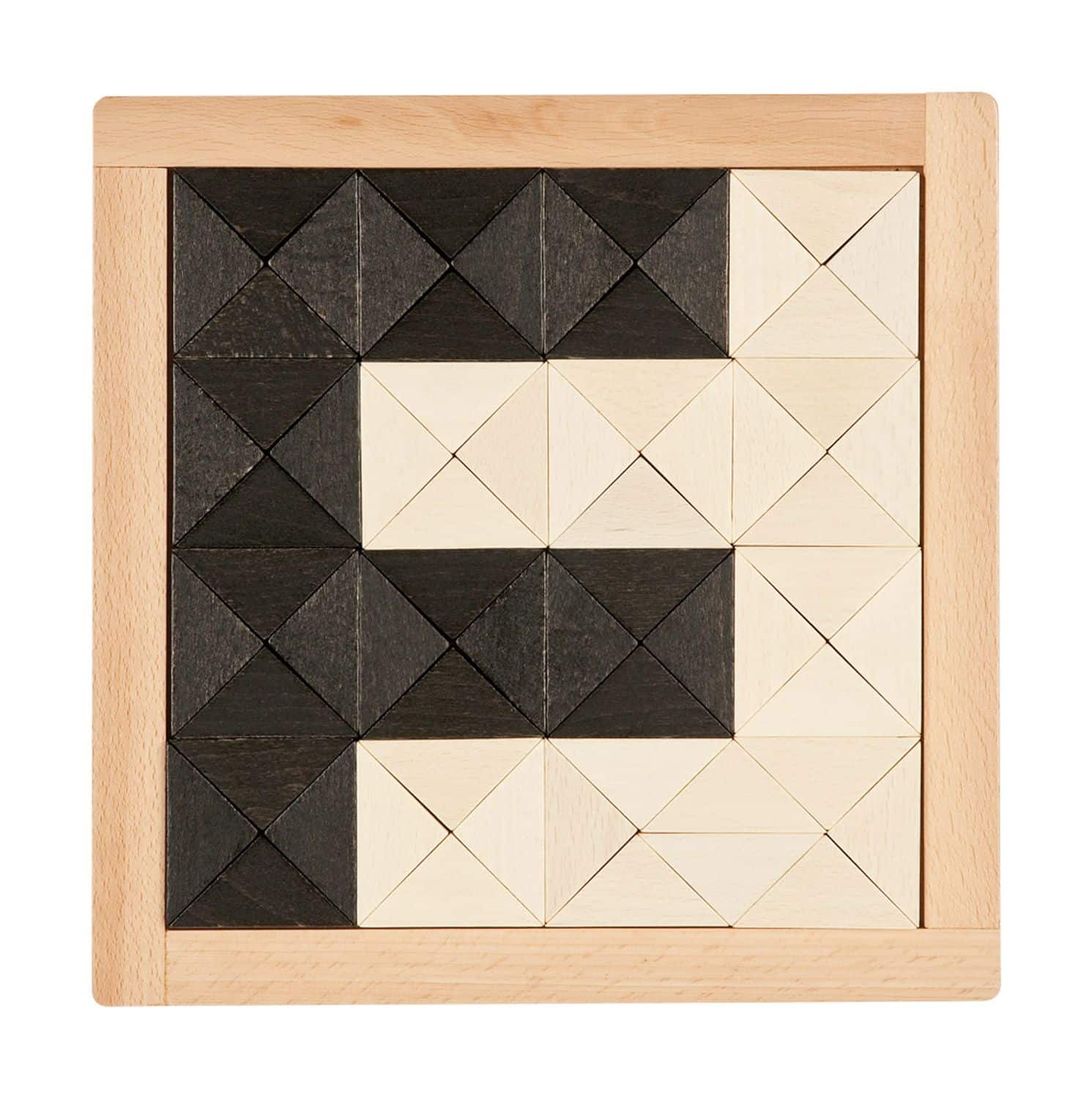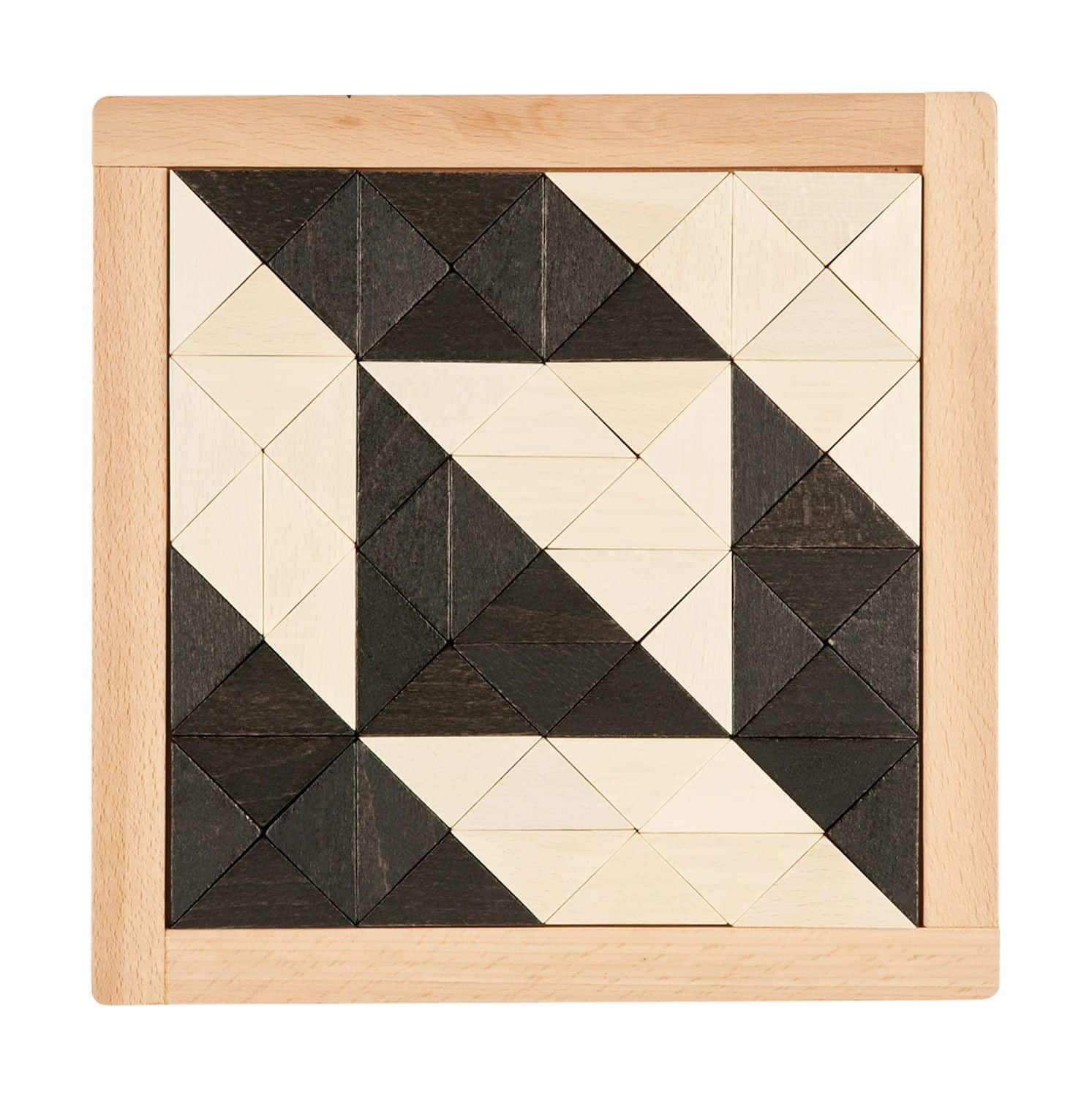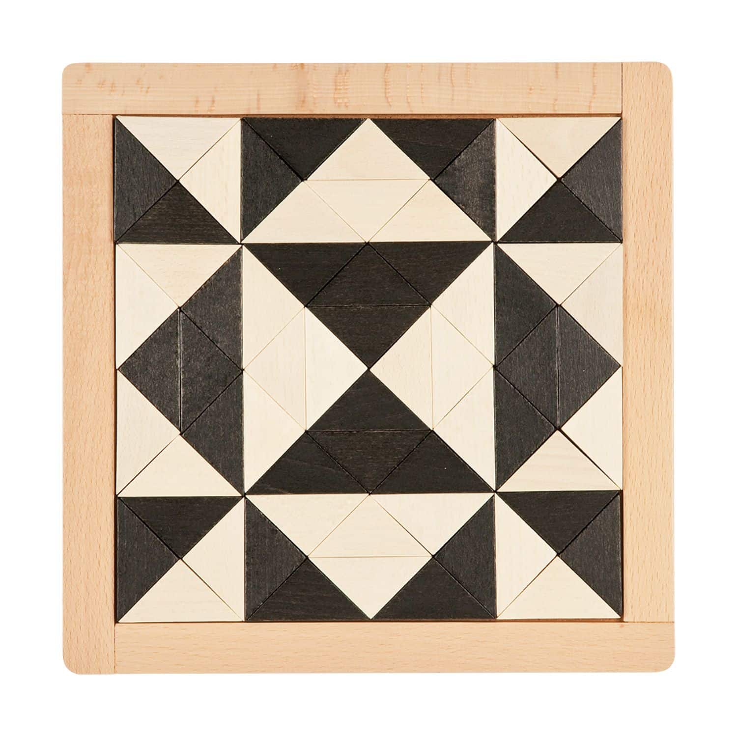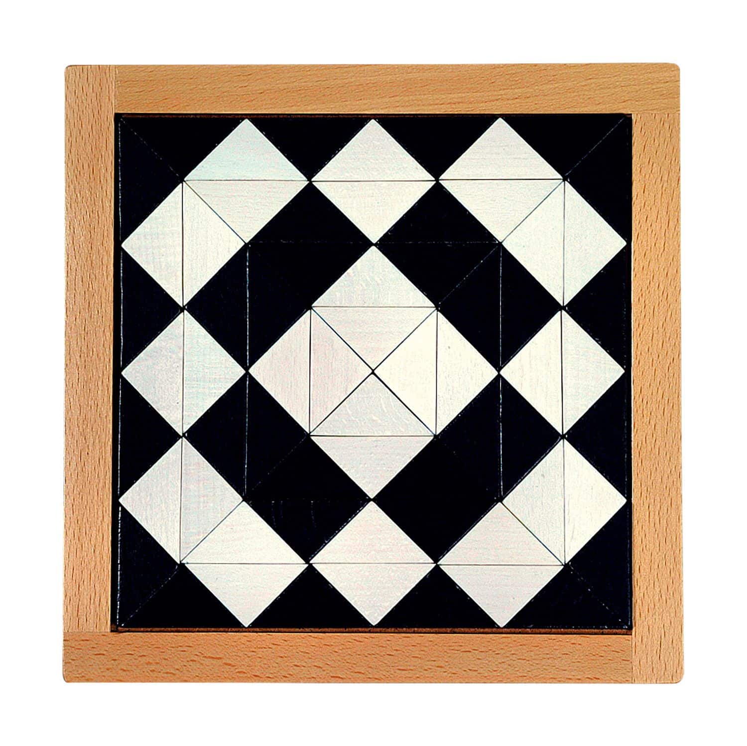 - Inhalt: 1 Anleitungsheft mit 171 Vorlagen, 64 Dreiecke (schwarz und weiß), 1 Holzrahmen