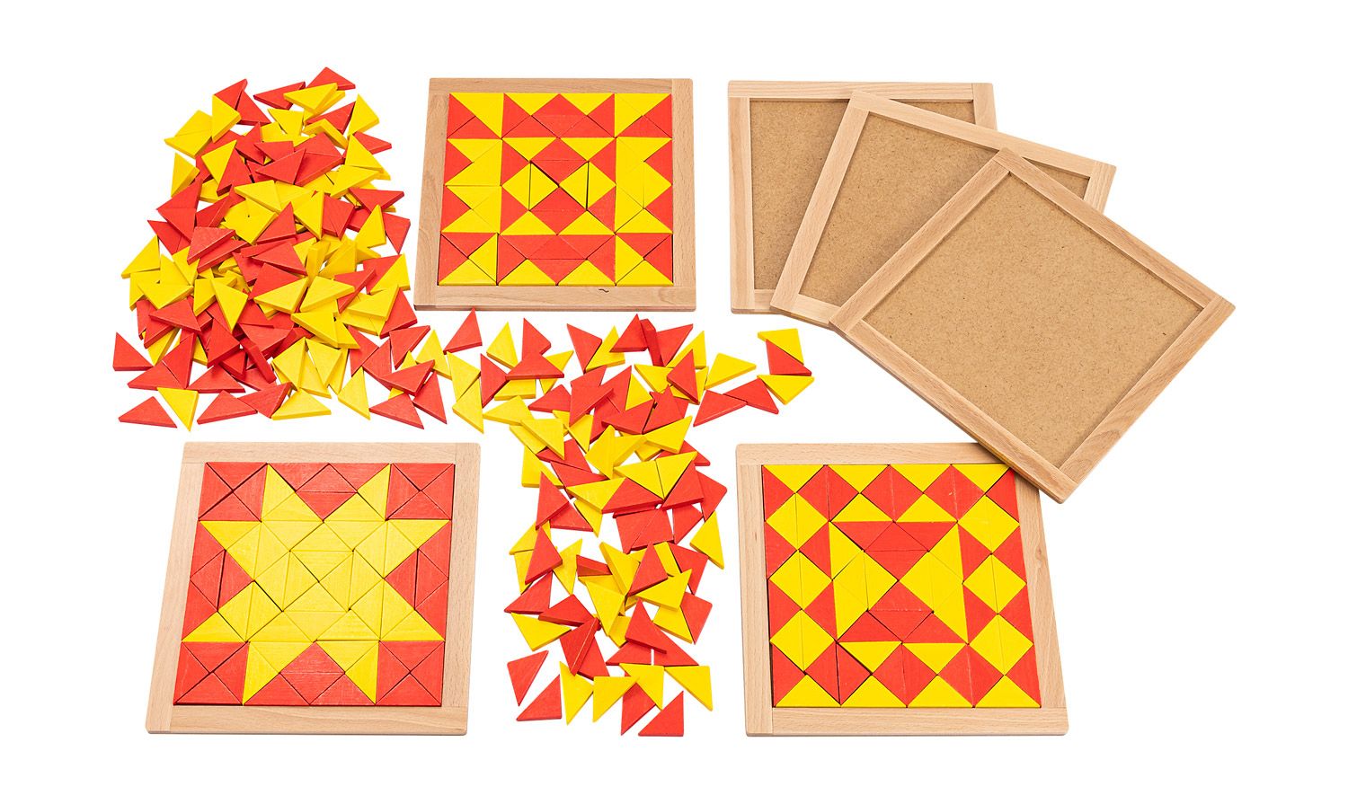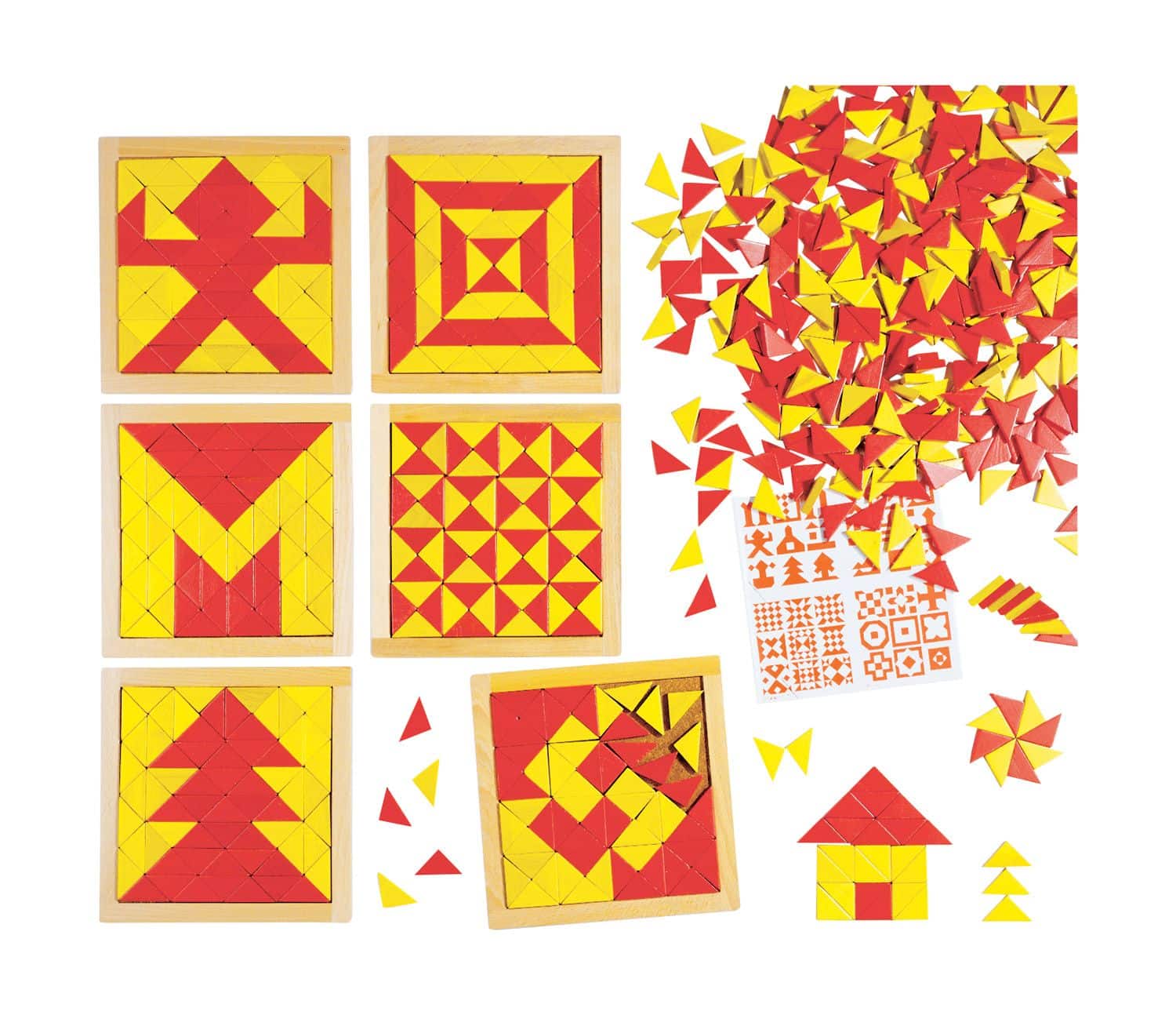 - Inhalt: 1 Anleitungsheft mit 171 Vorlagen, ca. 420 Dreiecke (rot und gelb), 6 Holzrahmen