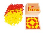 - Kreative und strategische Denkfähigkeit: Das Puzzeln mit den geometrischen Dreiecken fördert das kreative Denken. Kinder lernen, Farben und Formen zu kombinieren sowie visuelle Wahrnehmung und Formenverständnis zu entwickeln.
