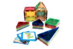 Der Magnet-Bausatz besteht aus 32 Elementen in 5 verschiedenen Farben – grün, blau, gelb, rot und violett. Diese magnetischen Bauteile aus transluzentem Kunststoff bieten zahlreiche Gestaltungsmöglichkeiten. Kinder können interessante Muster und Figuren legen oder fantasievolle Bauwerke wie Skulpturen und Wolkenkratzer erschaffen. Der Kreativität sind keine Grenzen gesetzt!