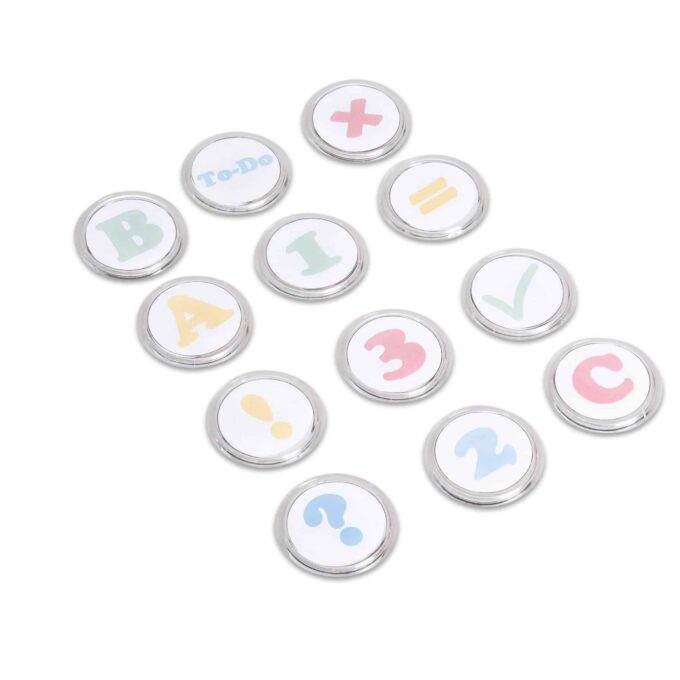 - Einfach organisiert bleiben: Nutzen Sie die Magnete, um Schränke, Materialkisten oder Planungsdiagramme sauber zu beschriften. Bringen Sie Ordnung in Zuhause, Klassenzimmer oder Arbeitsplatz und behalten Sie dabei den Spaßfaktor.
