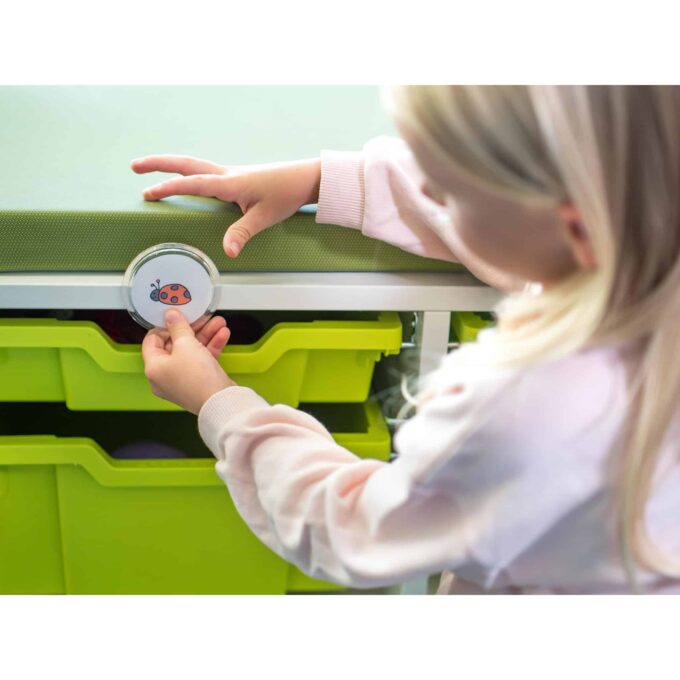 - Für Spiel- und Klassenzimmer: Präsentieren Sie Kunstwerke, vergeben Sie Gruppenverantwortlichkeiten oder erstellen Sie ein spielerisches Magnet-Memory-Spiel für Kinder.