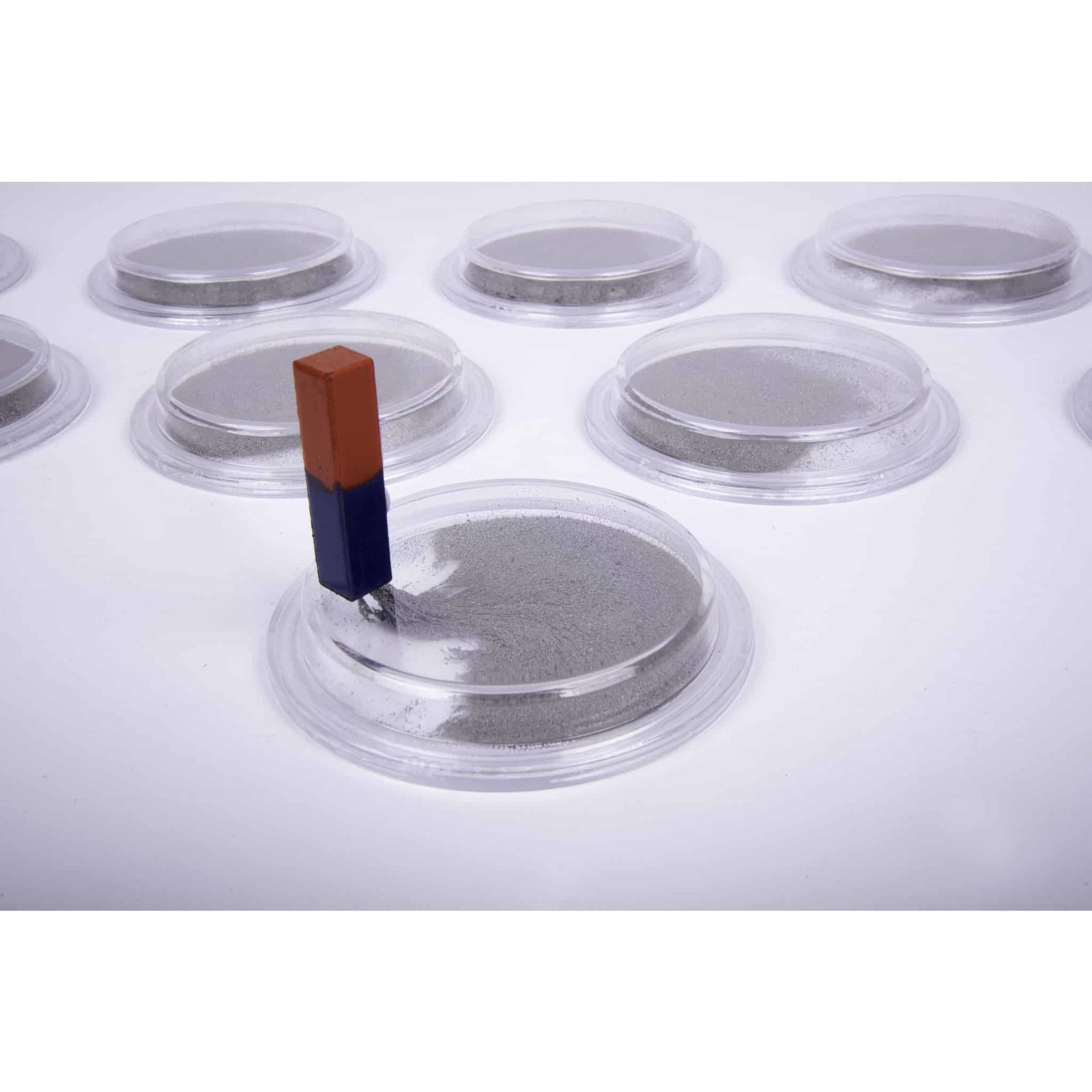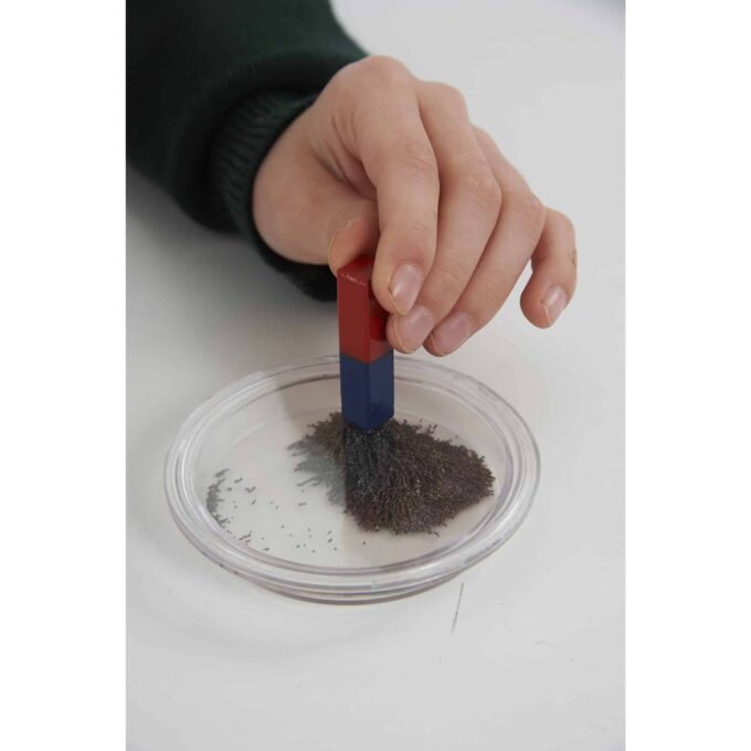 Hierbei wird ein Magnet einfach auf die Eisenpulver-Dose gelegt und die glatt verschlossene Dose leicht gerüttelt. Die darin enthaltenen Eisenfeilen beginnen zu tanzen und machen die magnetischen Feldlinien sichtbar. Ein faszinierendes visuelles Erlebnis, das die Neugier und das Verständnis Ihrer Schüler für Magnetismus und dessen Funktionsweise anregt!