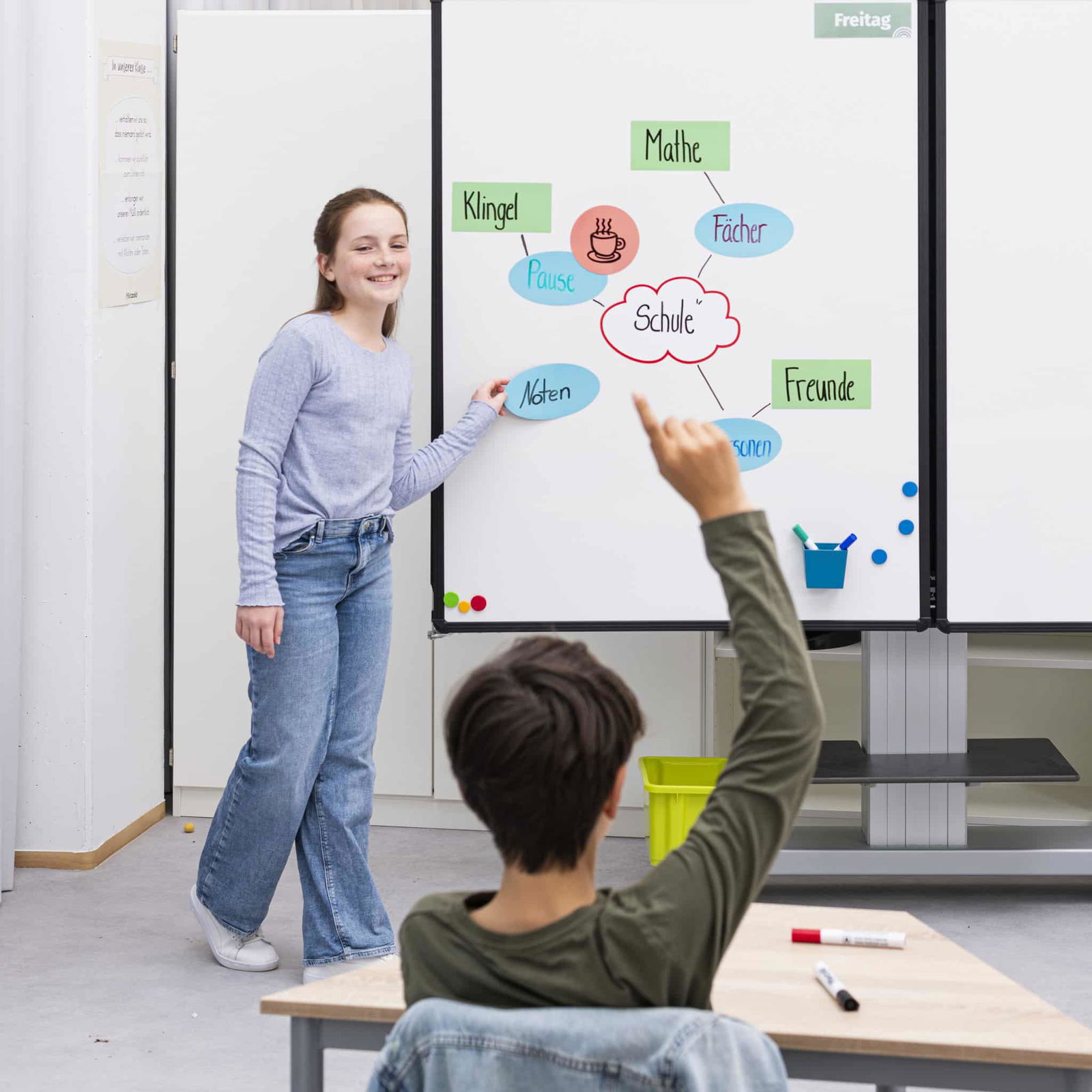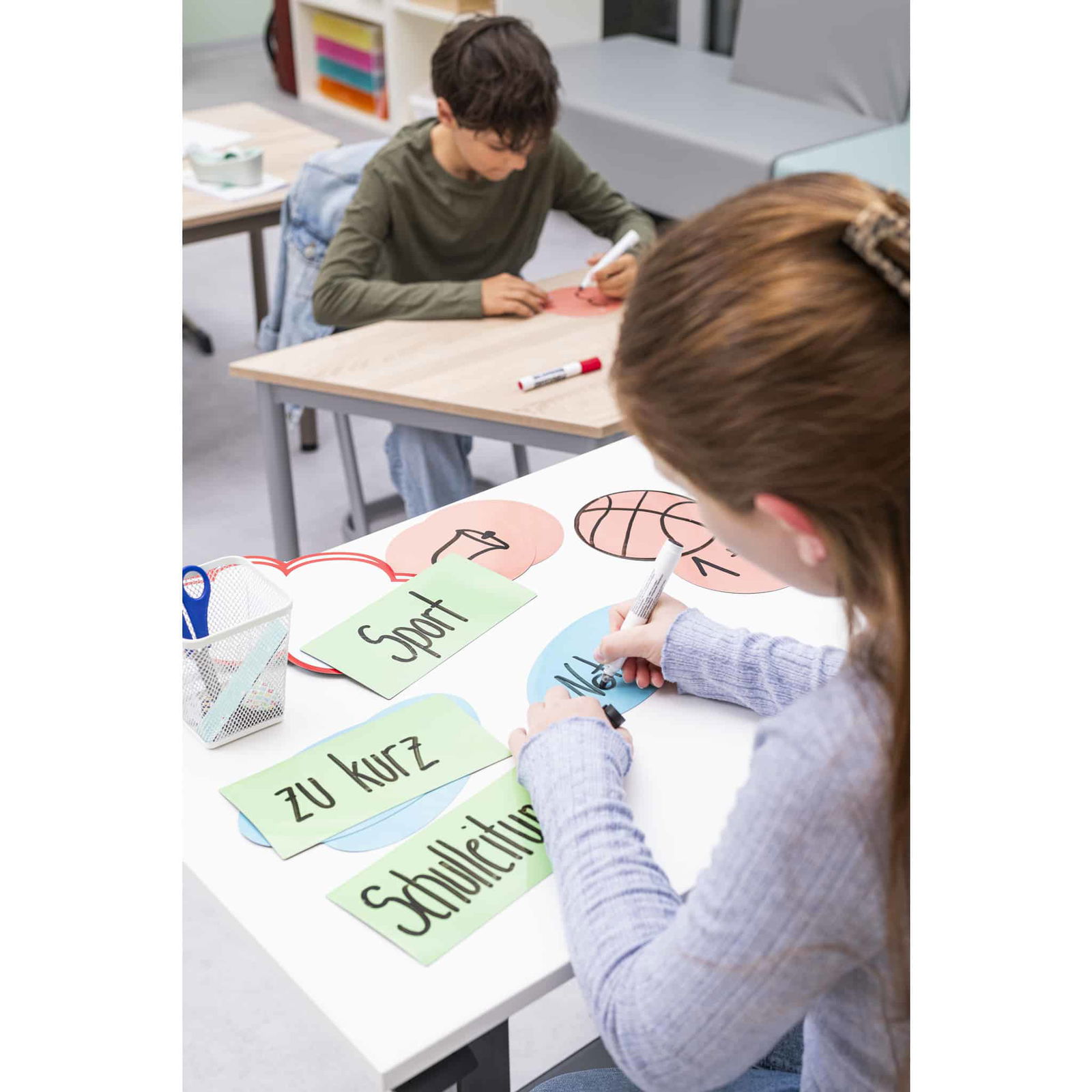 Die magnetischen Moderationskarten von Betzold bieten innovative und praktische Unterstützung für ansprechende und interaktive Präsentationen und Unterrichtseinheiten. Mit ihrer Wiederverwendbarkeit und magnetischen Haftfunktion sind sie die ideale Wahl für Schulen, Büros und Seminare. Die Karten lassen sich mit wasserlöslichen Whiteboard-Stiften beschreiben, sind leicht abwischbar und haften an allen magnetischen Oberflächen wie Tafeln oder Metalltüren.