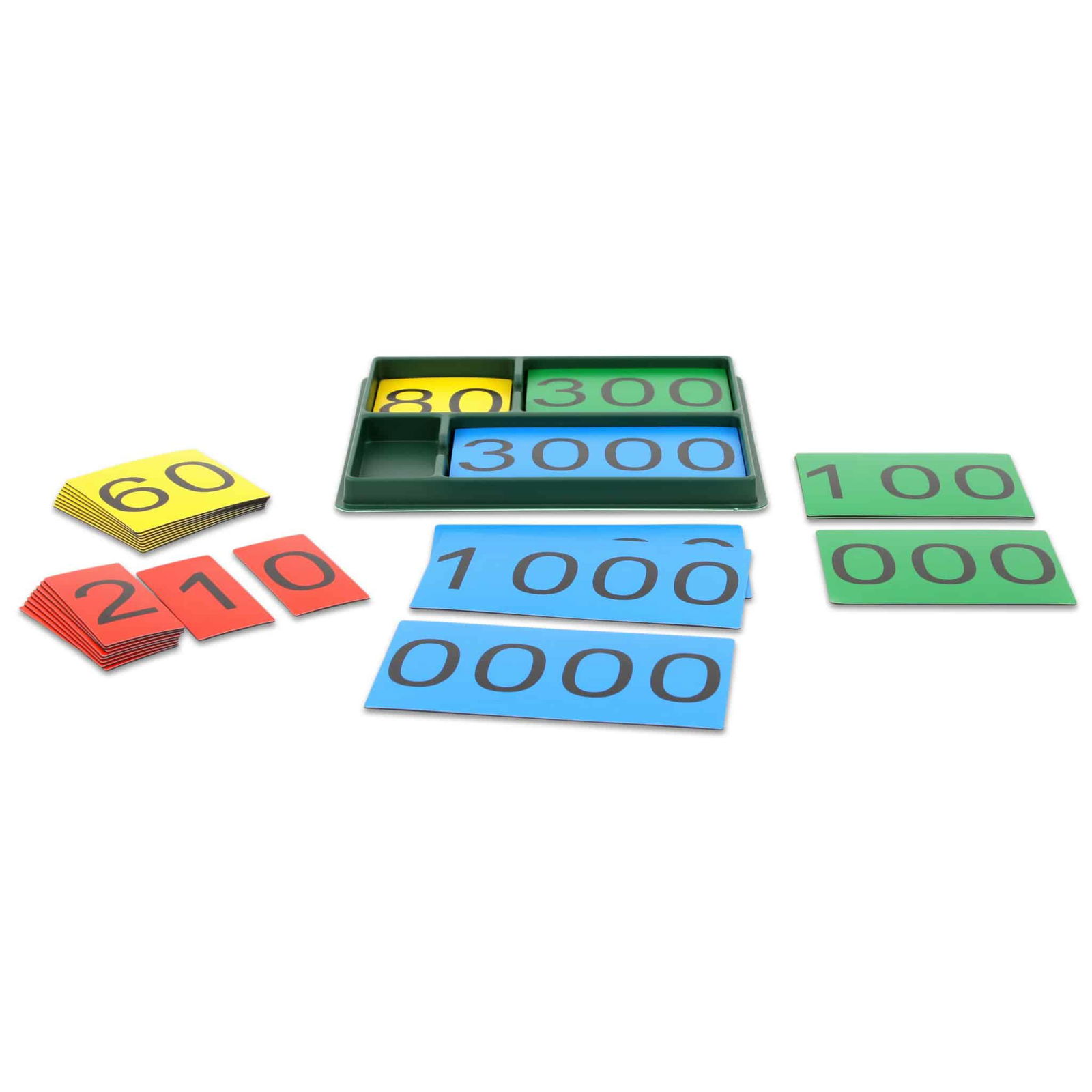 - Lieferumfang: 40 magnetische Stellenwertkarten (jeweils 10 Karten für 0-9 in den Stellenwerten Einer, Zehner, Hunderter, Tausender)