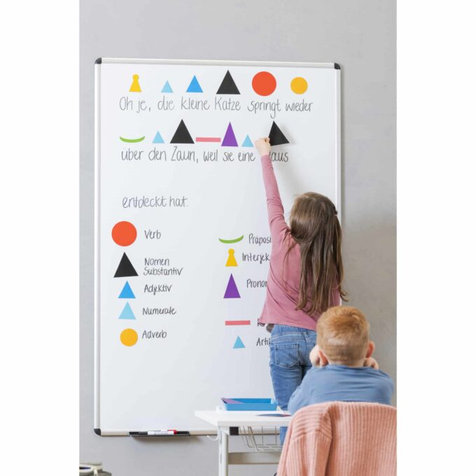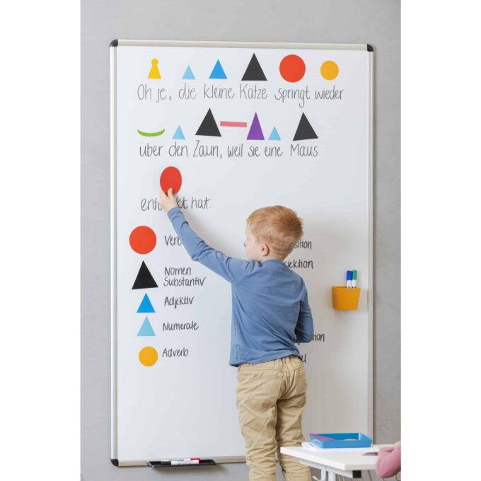 Die magnetischen Wortartensymbole sind speziell dafür konzipiert, die verschiedenen Wortarten sichtbar zu machen und den Schülern zu helfen, die Struktur von Sätzen zu verstehen. Das Set umfasst Symbole für insgesamt 10 Wortarten – eine umfassende Sammlung, die sicherstellt, dass alle wichtigen Bereiche der Grammatik abgedeckt sind. Die Kinder werden ermutigt, mit den Symbolen zu experimentieren, Sätze zu bilden und Texte zu analysieren, was nicht nur den analytischen Denkprozess, sondern auch die Sprachkompetenz verbessert.