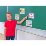Dank der anschaulichen Bilder und den passenden Wortschildern verinnerlichen die Schülerinnen und Schüler schnell die richtigen Abläufe – von den Sicherheitshinweisen bis zur fachgerechten Entsorgung von Materialien. Besonders hilfreich ist, dass die bildlichen Darstellungen kindgerecht gestaltet sind, was sie ideal für jüngere Kinder macht, die möglicherweise noch nicht lesen können.