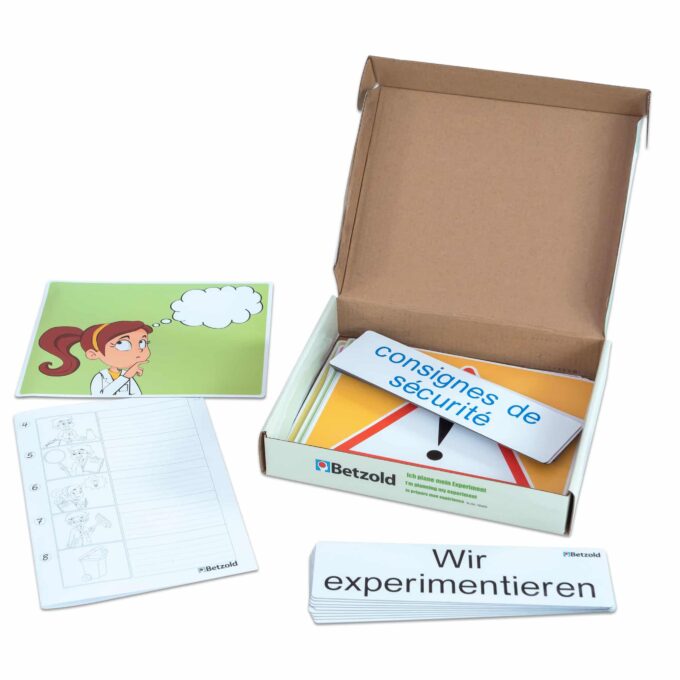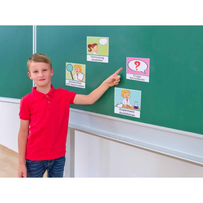 Forschen und Experimentieren macht Kindern ungemein Spaß! Doch wie geht man an die Planung eines Experiments heran? Die Fragen, die beim Experimentieren auftauchen, können mit dem Betzold Tafelmaterial klar und strukturiert beantwortet werden. Jedes der Schilder ist speziell dafür konzipiert, den Ablauf eines Experiments Schritt für Schritt zu erläutern.