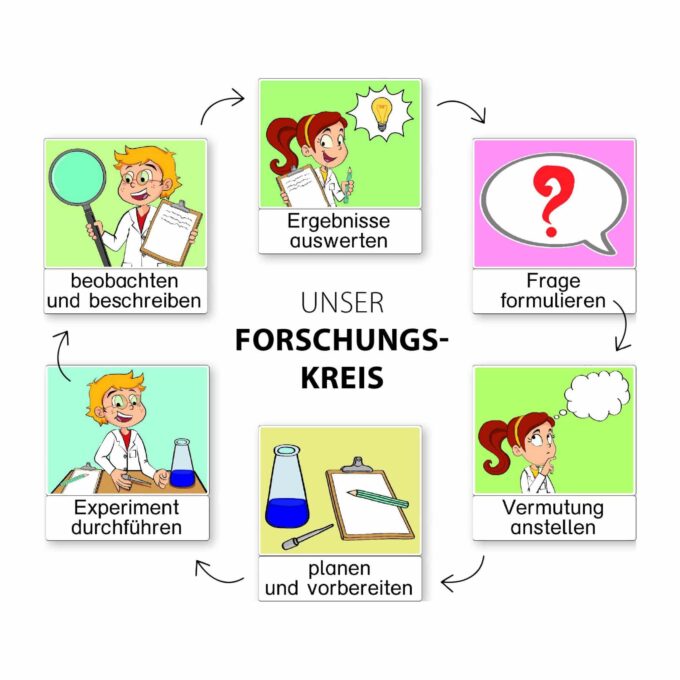 - Thema wählen: Gemeinsames Überlegen im Unterricht, was erforscht werden soll.