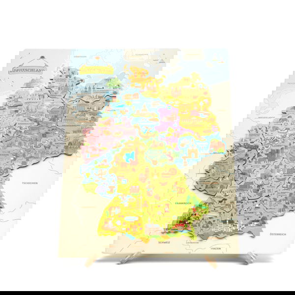 Dieses Puzzle verbindet Lernen mit Spaß und bietet Kindern ab 3 Jahren die Möglichkeit, ihre Feinmotorik und ihr räumliches Denken zu schulen, während sie die Vielfalt Deutschlands entdecken. Gefertigt aus erstklassigem Birken-Sperrholz und Magnet, sorgt das Puzzle nicht nur für langlebigen Spielspaß, sondern ist auch kinderleicht zu handhaben. Durch die robuste Metallplatte bleibt jedes Puzzleteil sicher an Ort und Stelle – ideal für kleine Entdecker!