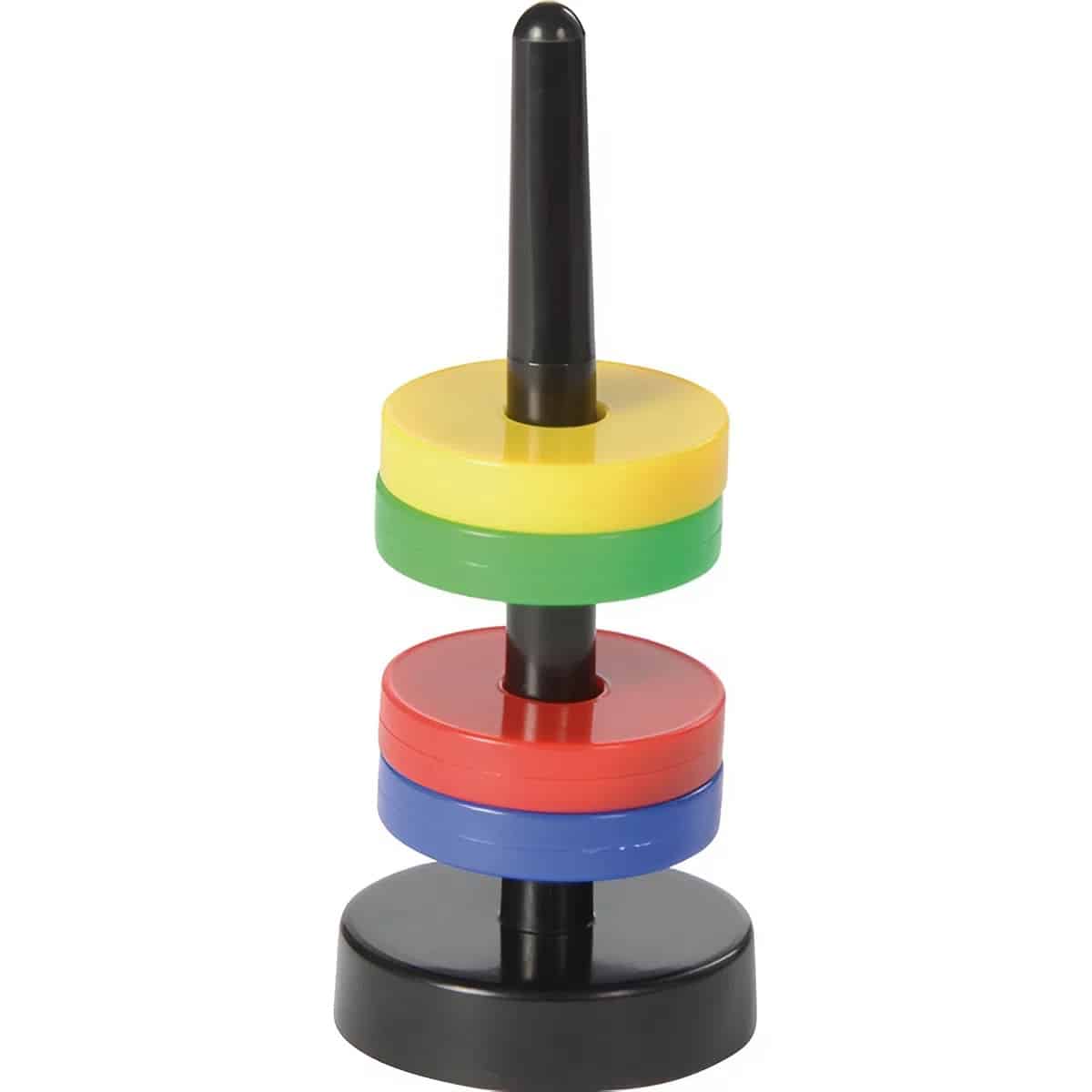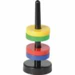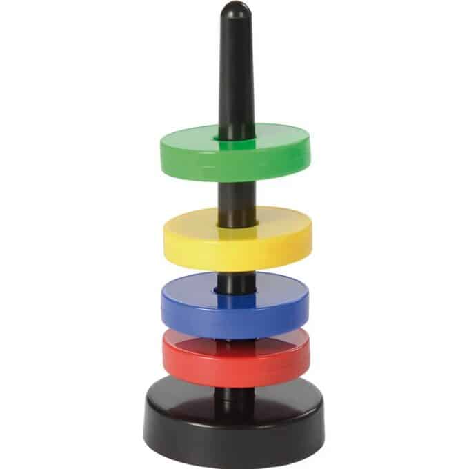- Geschicktes Hantieren: Das Aufstecken der Ringe auf den Stab erfordert eine ruhige Hand und trainiert die Feinmotorik sowie die Hand-Auge-Koordination.
