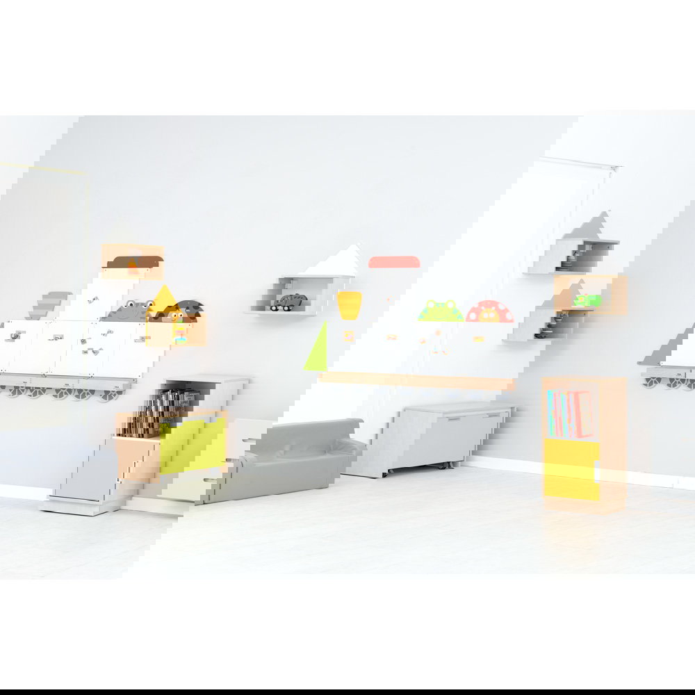Die lustige Zug-Optik mit den farbigen Applikationen ist eine attraktive Dekoration, die jedem Raum eine fröhliche und einladende Atmosphäre verleiht. Gleichzeitig ist das Set ein vollwertiges Spiel- und Lernmöbel, das aktiv genutzt wird und so Funktionalität und Design perfekt vereint. - Praktisch und durchdacht