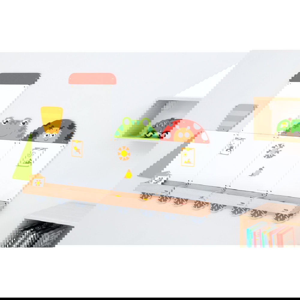 Ob als langer Zug an einer Wand oder kreativ im Raum verteilt – die einzelnen Module können auch separat montiert werden. So passt sich das Set flexibel den räumlichen Gegebenheiten an und ermöglicht eine individuelle Wandgestaltung. Jedes Kind kann seinen „eigenen“ Waggon erhalten, was das Gefühl von persönlichem Raum und Verantwortung stärkt. - Dekorativer Blickfang mit Funktion