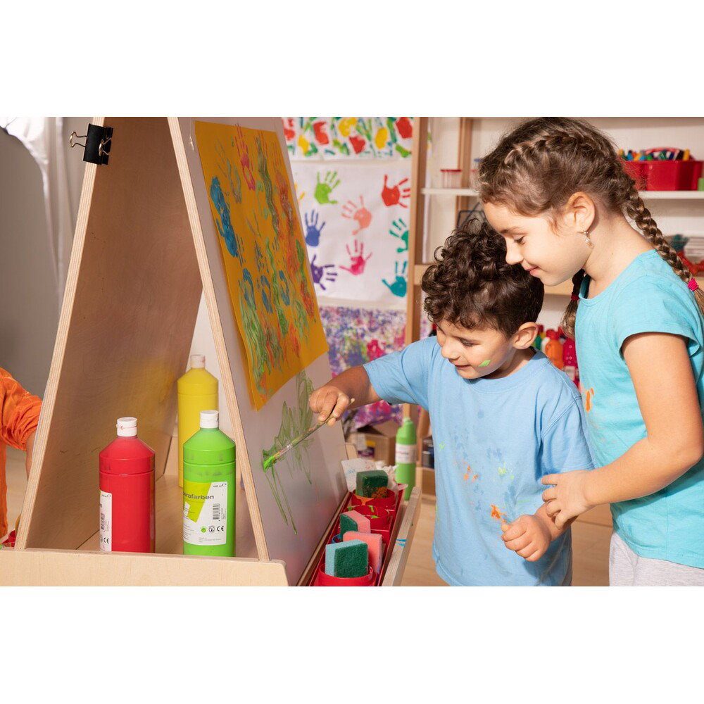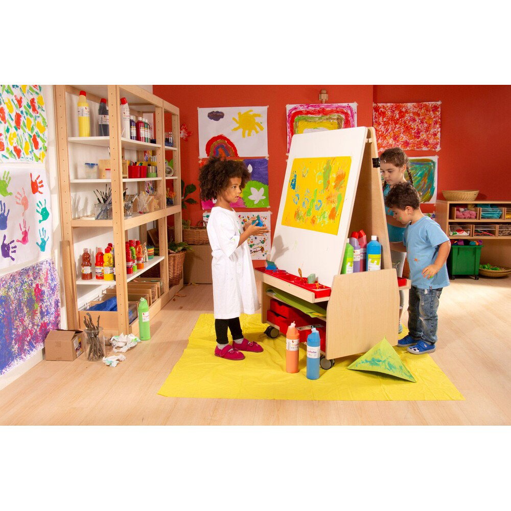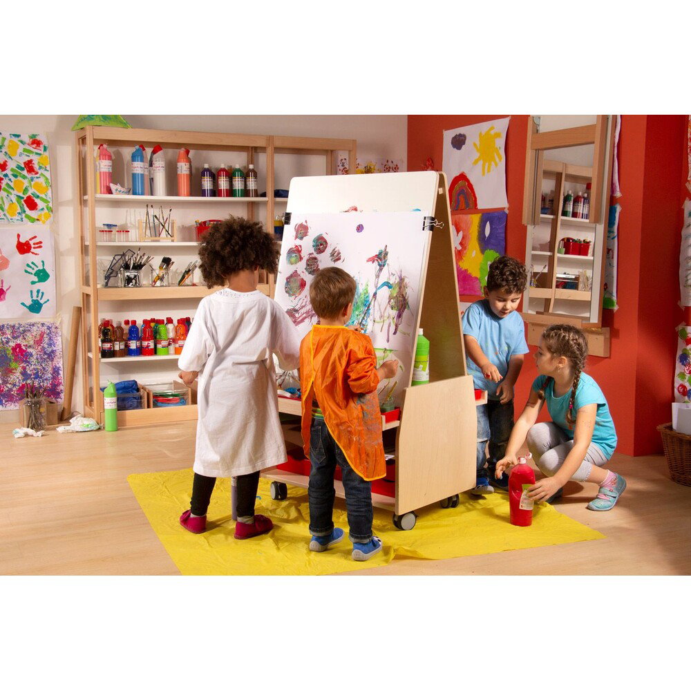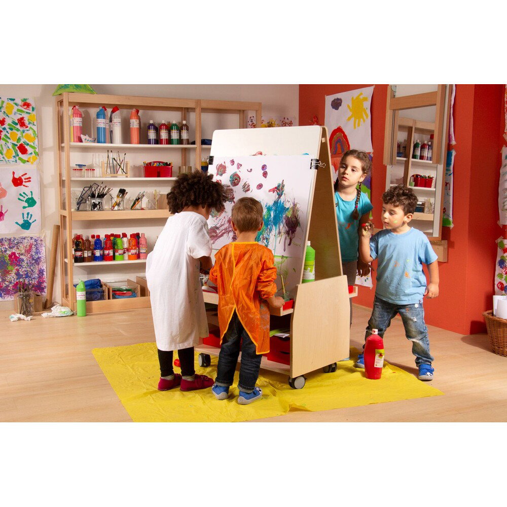 Dank der vier feststellbaren Rollen lässt sich die Malstation mühelos von einem Raum in den anderen bewegen. So kann sie flexibel für Gruppenarbeiten genutzt oder bei Nichtgebrauch platzsparend zur Seite geschoben werden. Die Bremsen sorgen dabei jederzeit für einen sicheren und stabilen Stand. - Beidseitig nutzbar für gemeinsames Schaffen