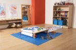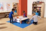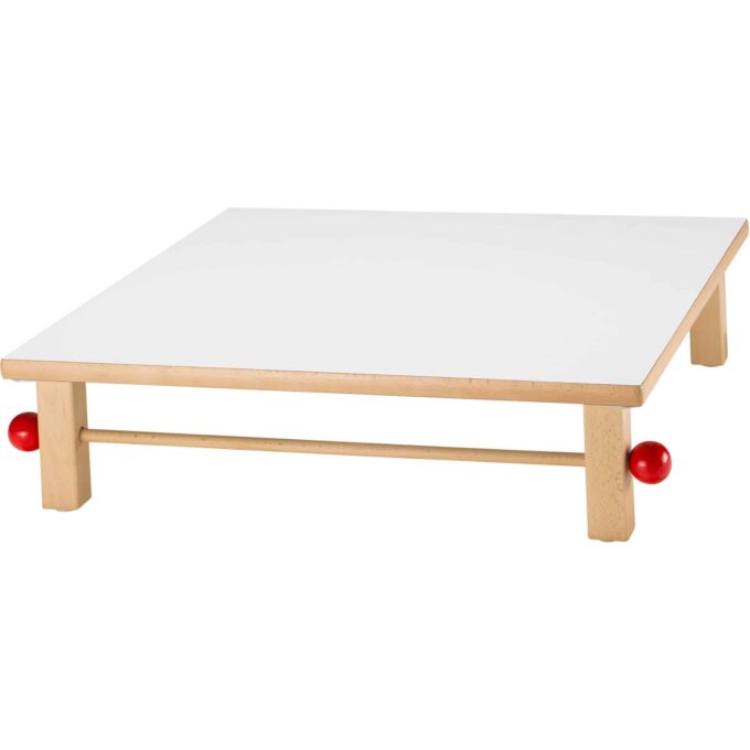 Design und Sicherheit: Das Mal- und Kreativpodest besticht durch seine kindgerechte und ansprechende Gestaltung. Die intuitive Form und die kindgerechte Höhe sorgen dafür, dass die jungen Künstler bequem arbeiten können, während die Stufe gleichzeitig verhindert, dass andere Kinder über ihre Kunstwerke laufen. Die glatte, leicht zu reinigende Oberfläche garantiert eine einfache Pflege.